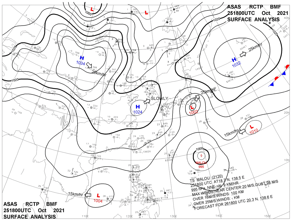 2021/10/25 18z sfcmap 天氣圖