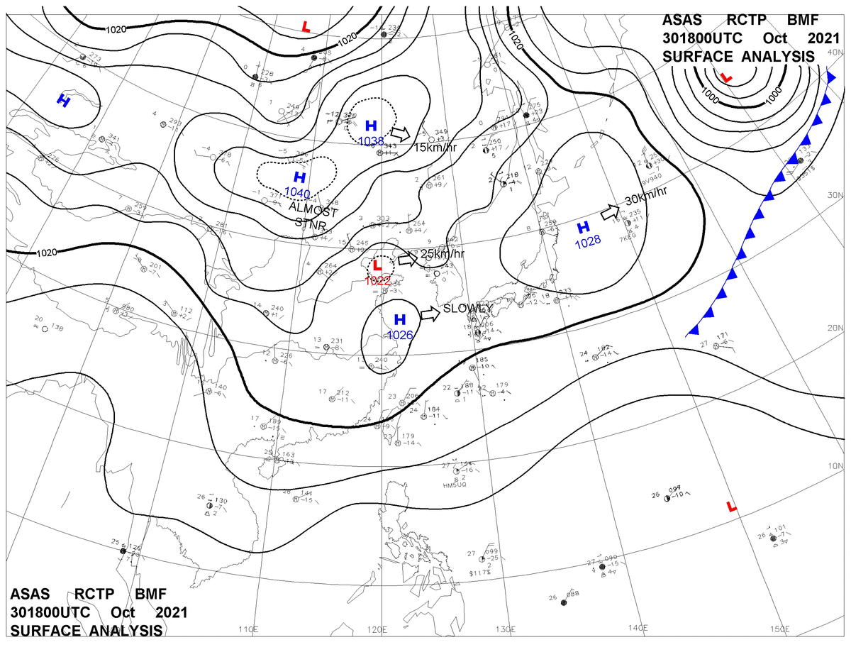 2021/10/30 18z sfcmap 天氣圖