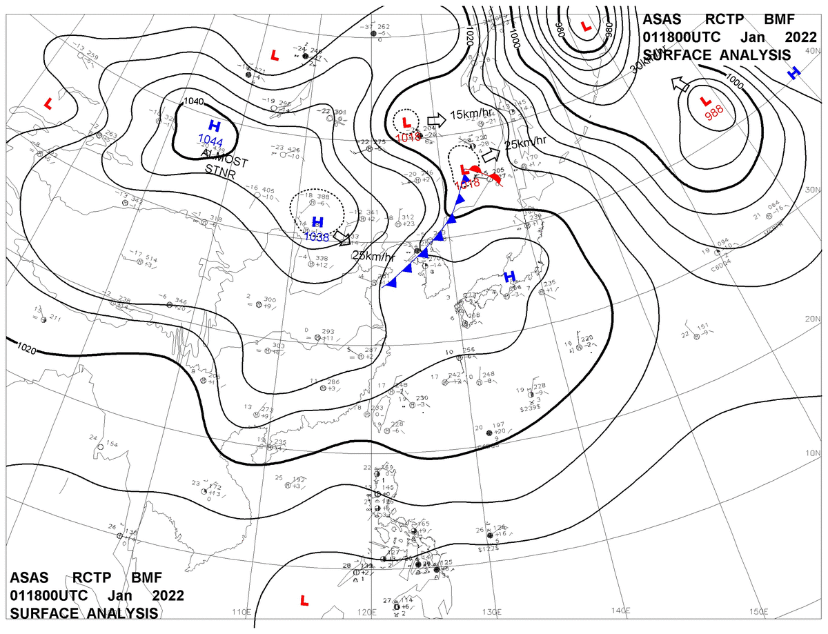 2022/01/01 18z sfcmap 天氣圖