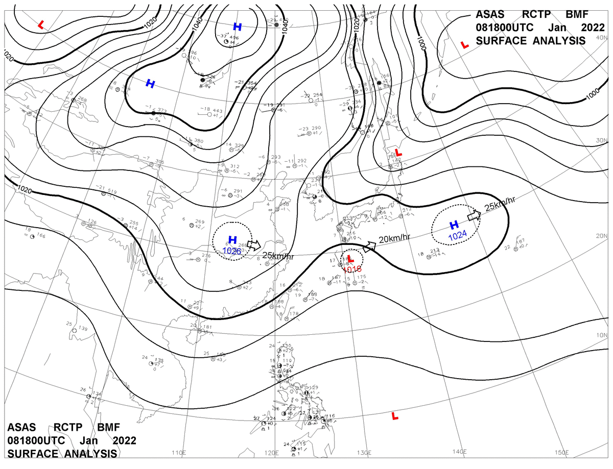 2022/01/08 18z sfcmap 天氣圖