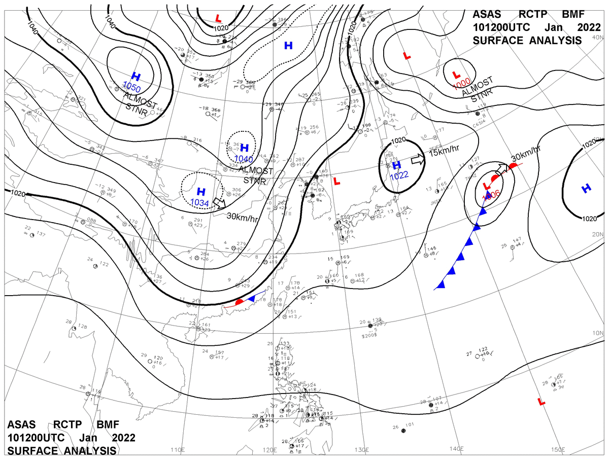 2022/01/10 12z sfcmap 天氣圖