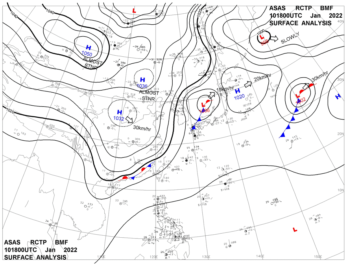 2022/01/10 18z sfcmap 天氣圖