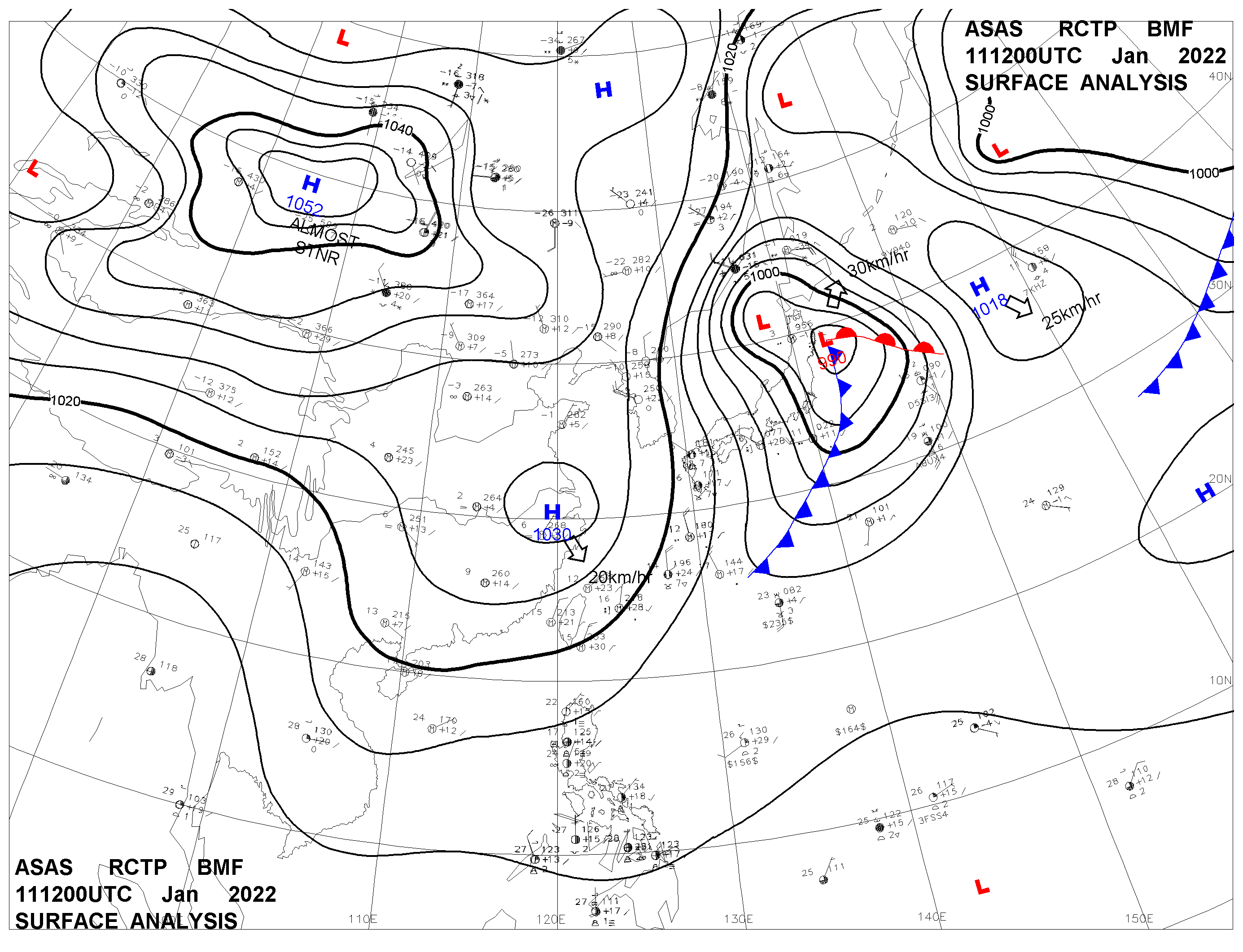 2022/01/11 12z sfcmap 天氣圖
