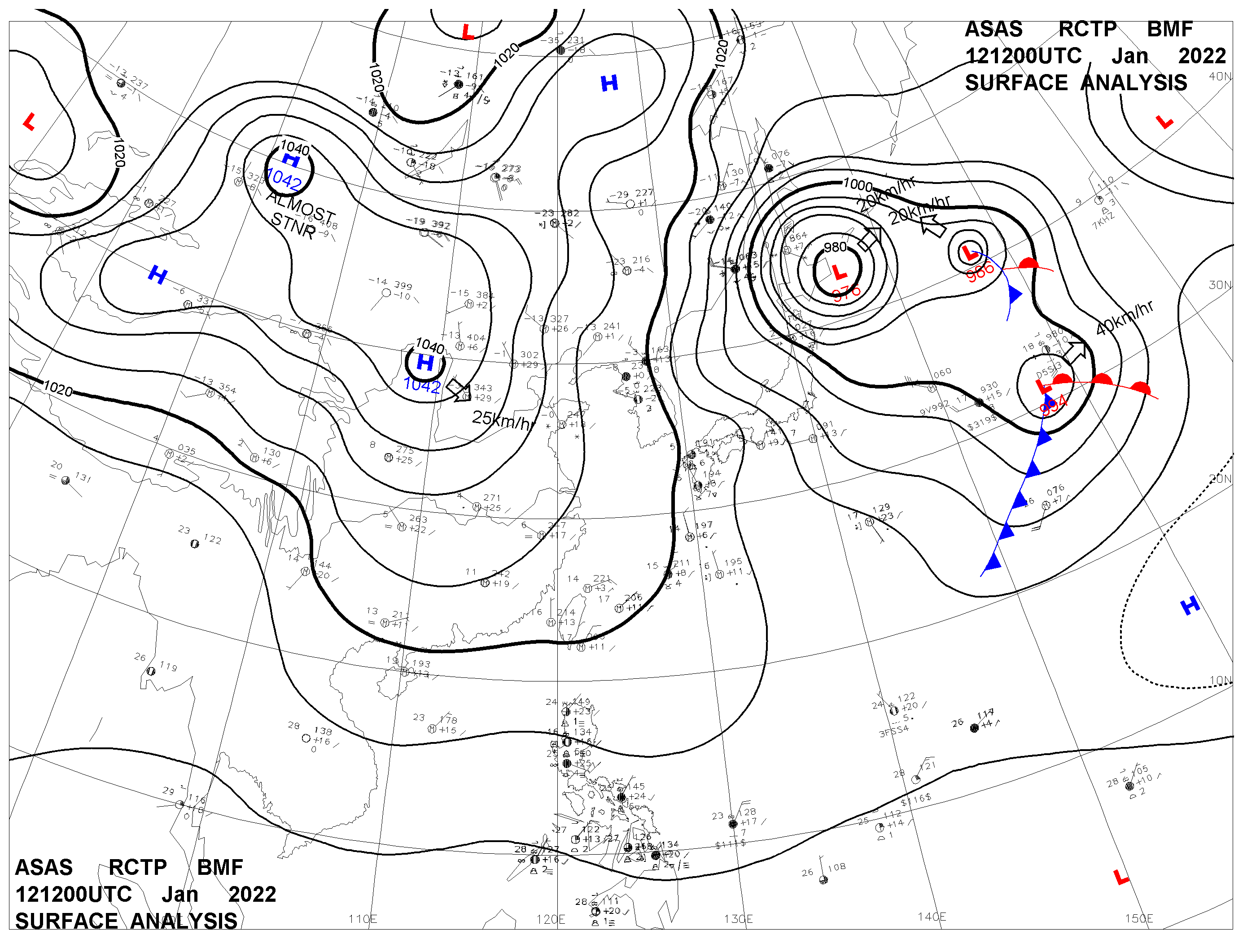 2022/01/12 12z sfcmap 天氣圖