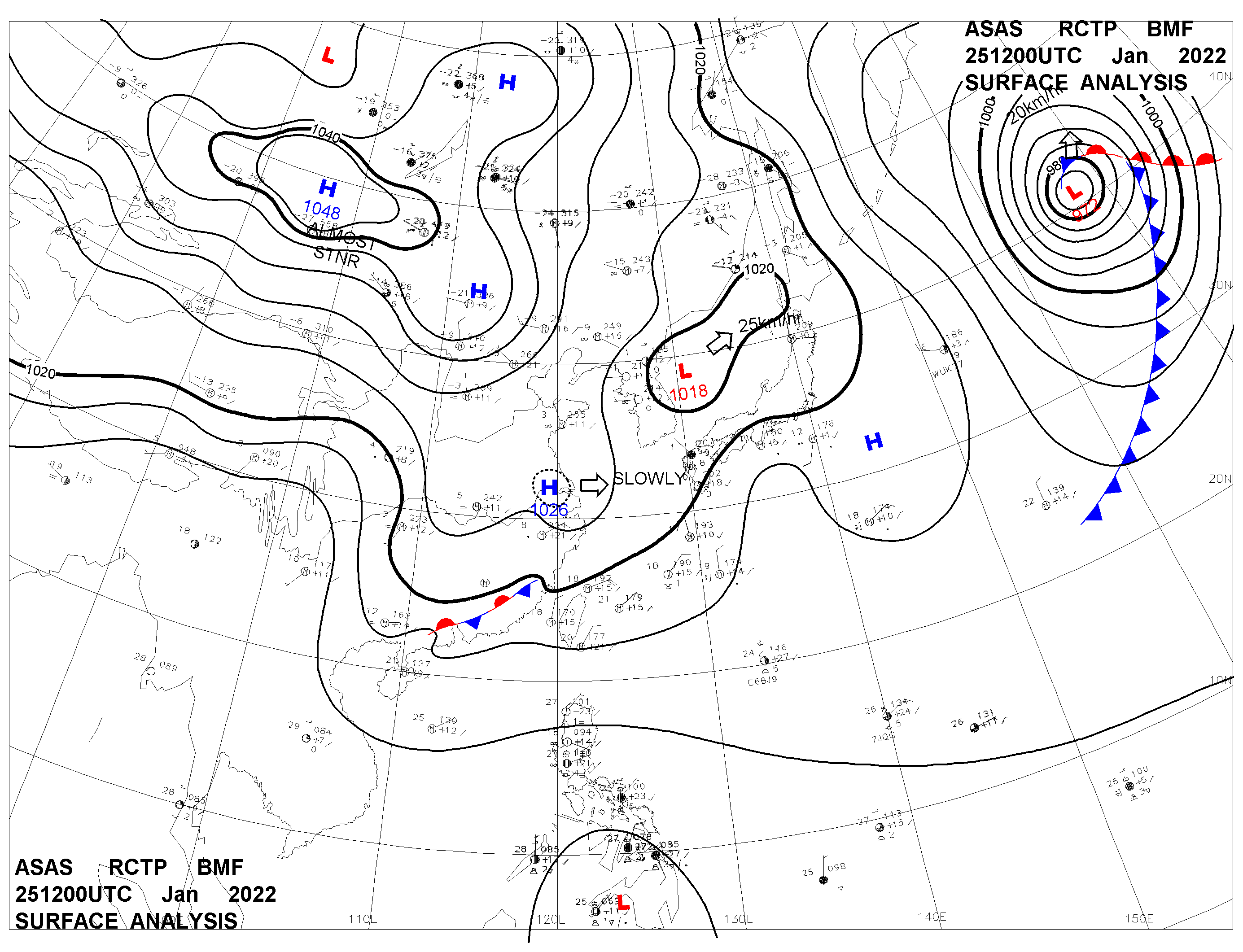 2022/01/25 12z sfcmap 天氣圖