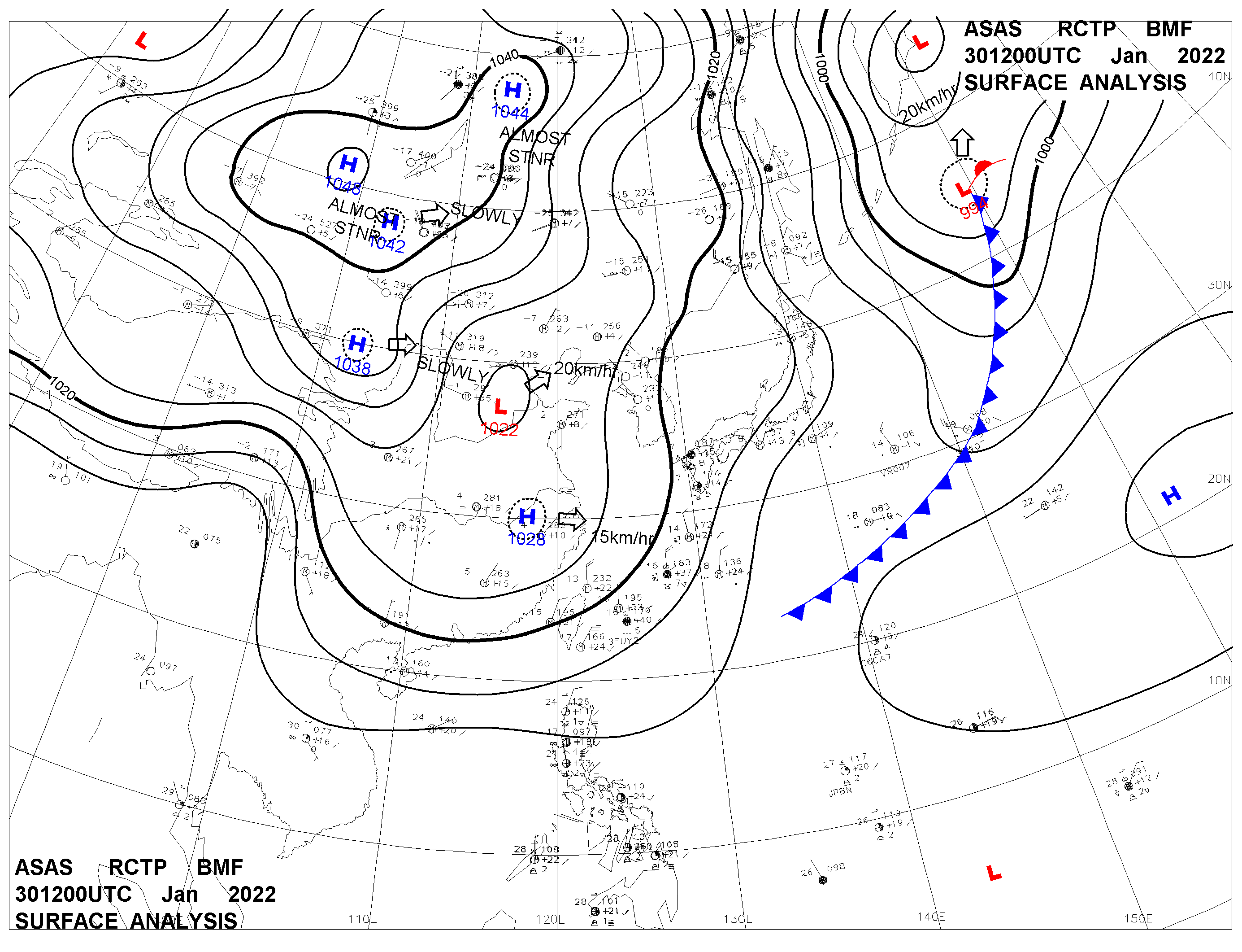 2022/01/30 12z sfcmap 天氣圖