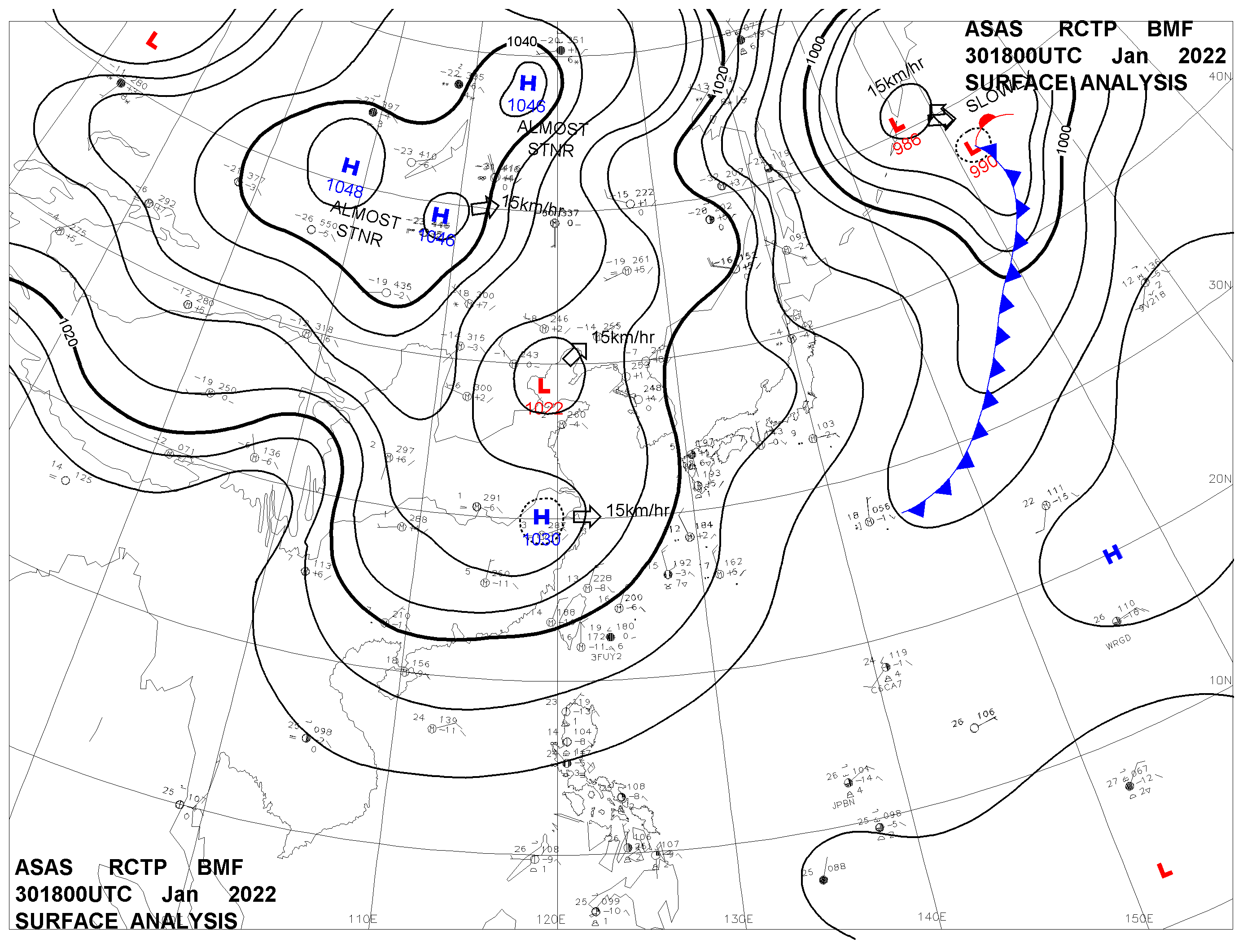 2022/01/30 18z sfcmap 天氣圖
