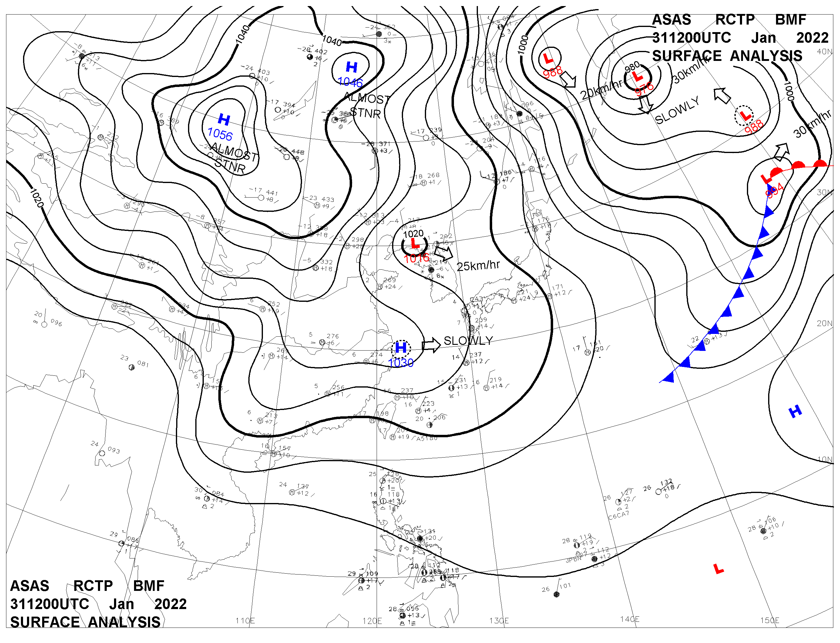 2022/01/31 12z sfcmap 天氣圖