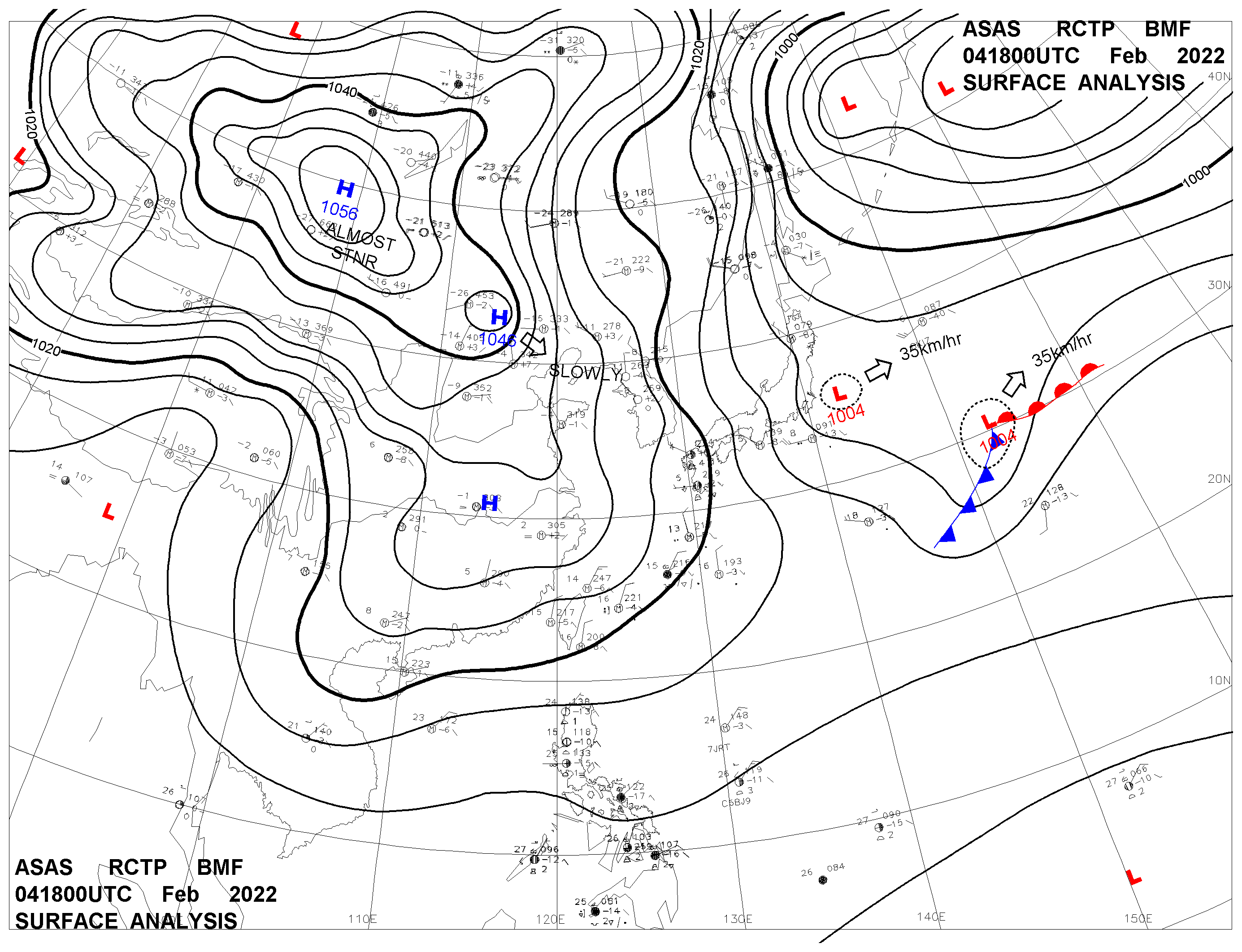 2022/02/04 18z sfcmap 天氣圖