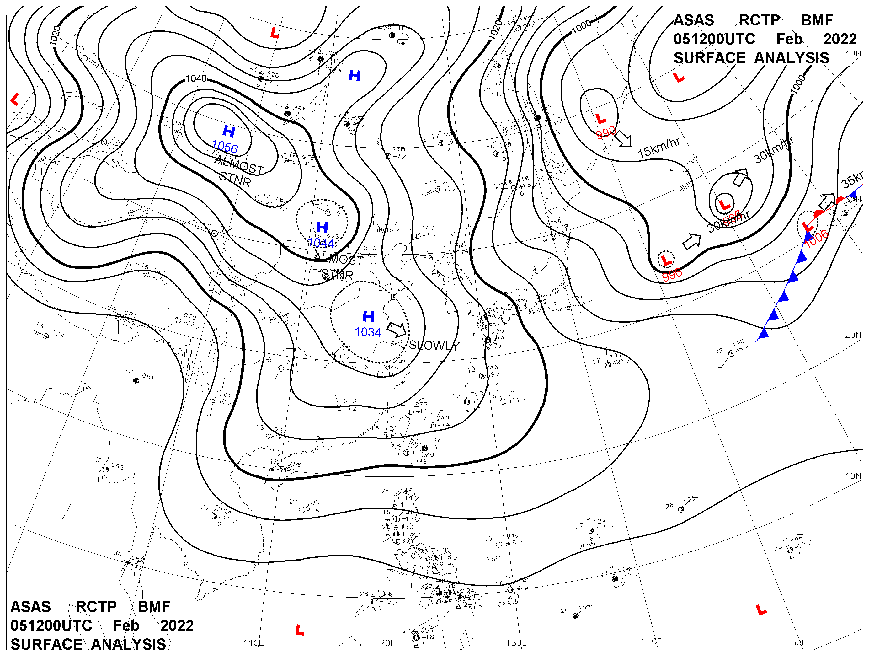 2022/02/05 12z sfcmap 天氣圖
