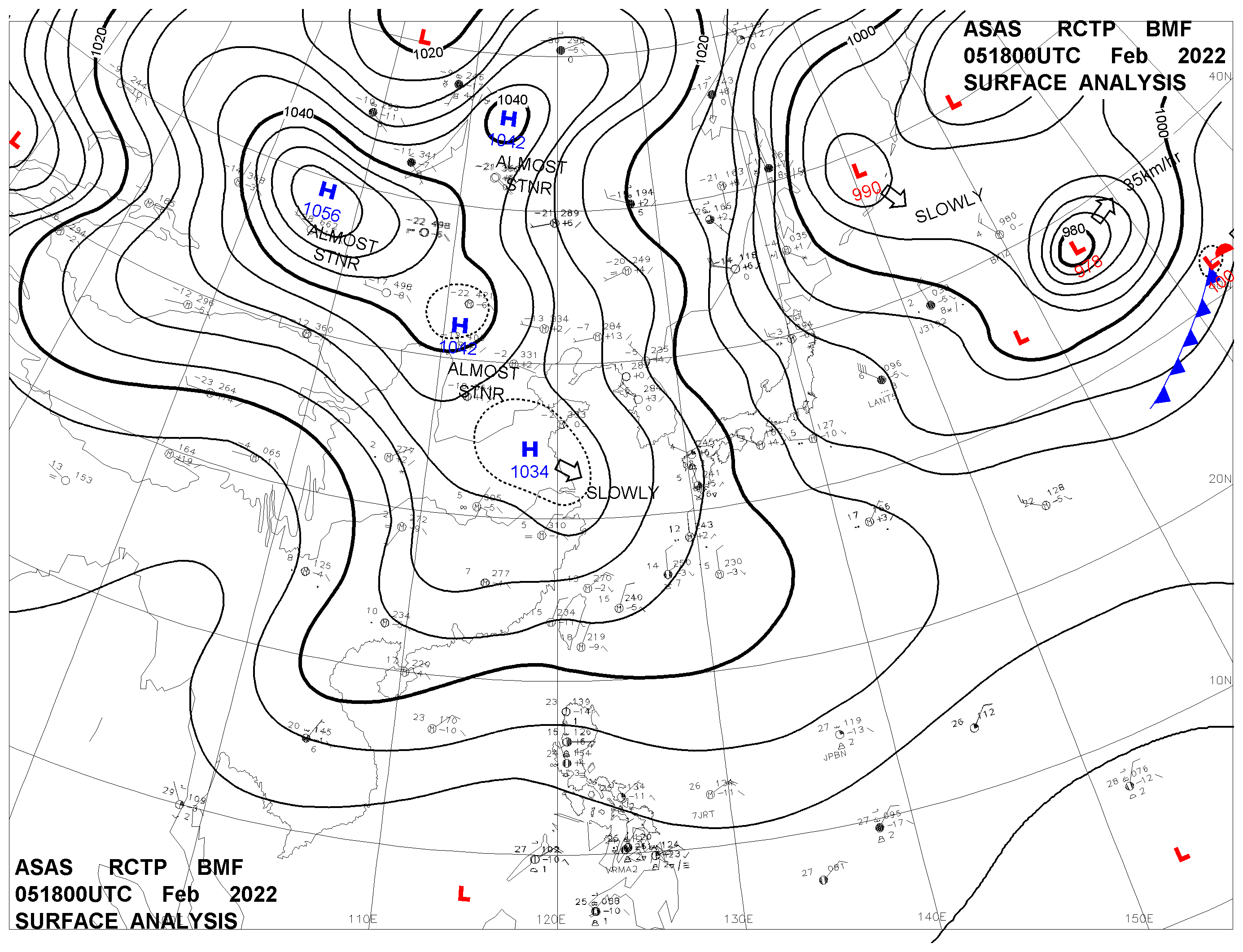 2022/02/05 18z sfcmap 天氣圖