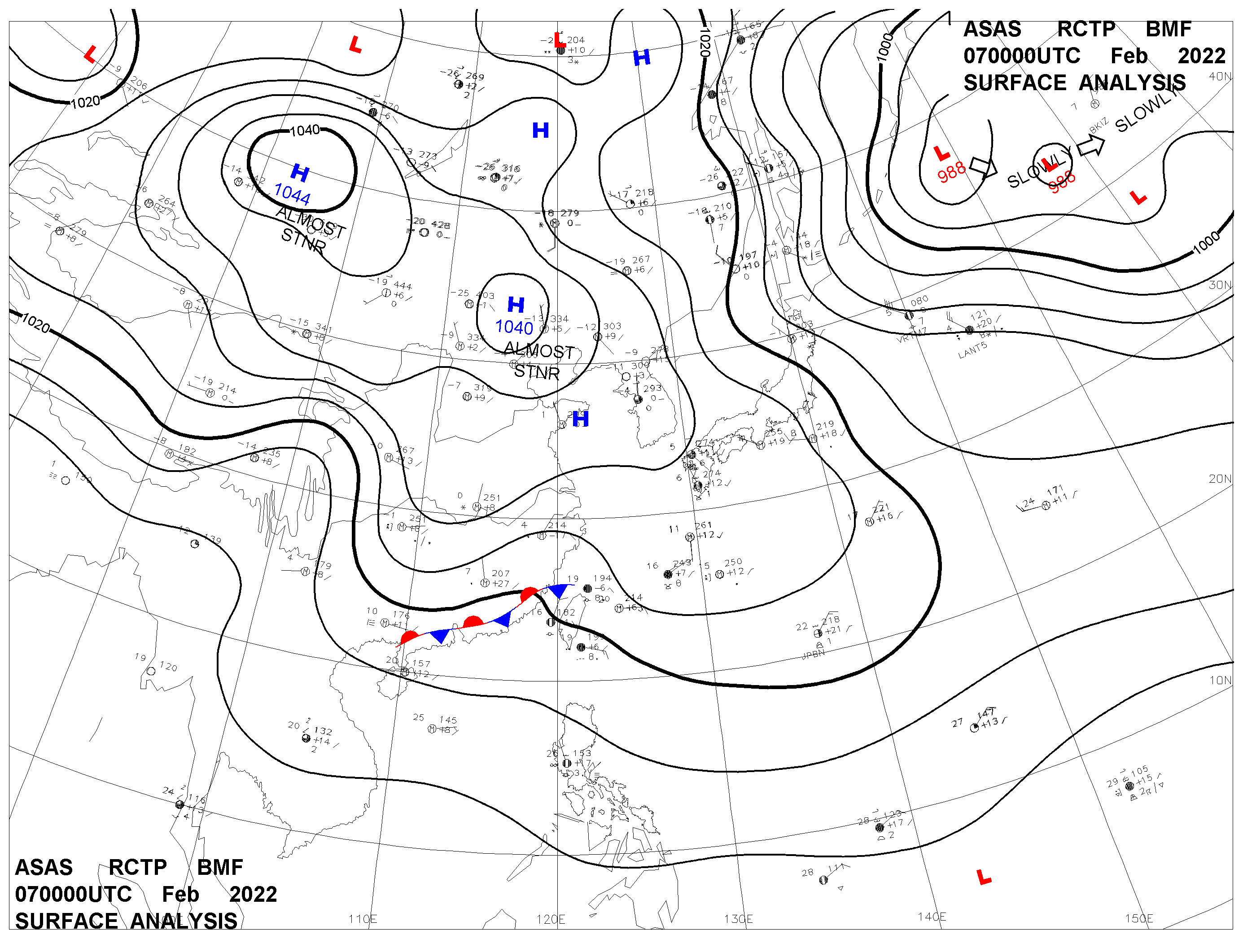 2022/02/07 00z sfcmap 天氣圖