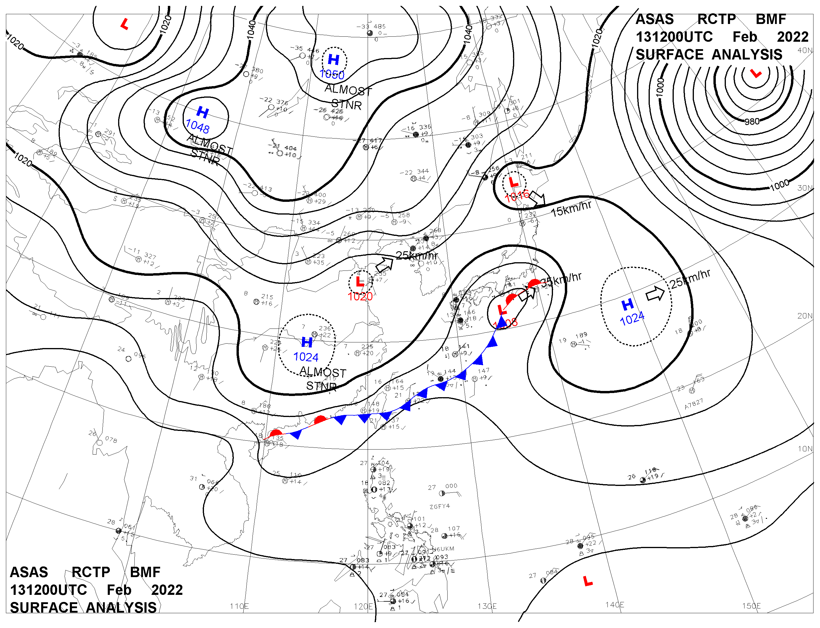 2022/02/13 12z sfcmap 天氣圖