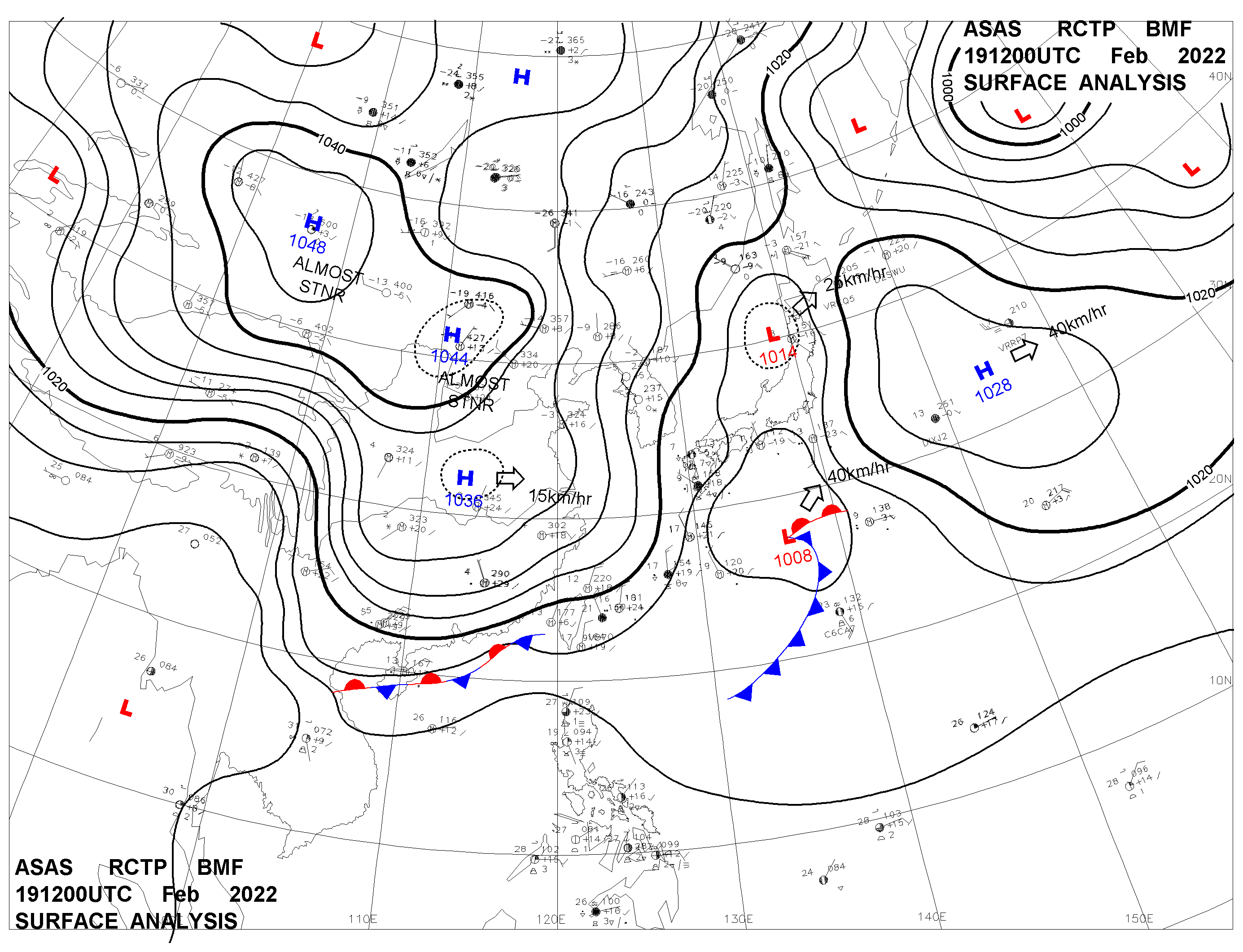 2022/02/19 12z sfcmap 天氣圖