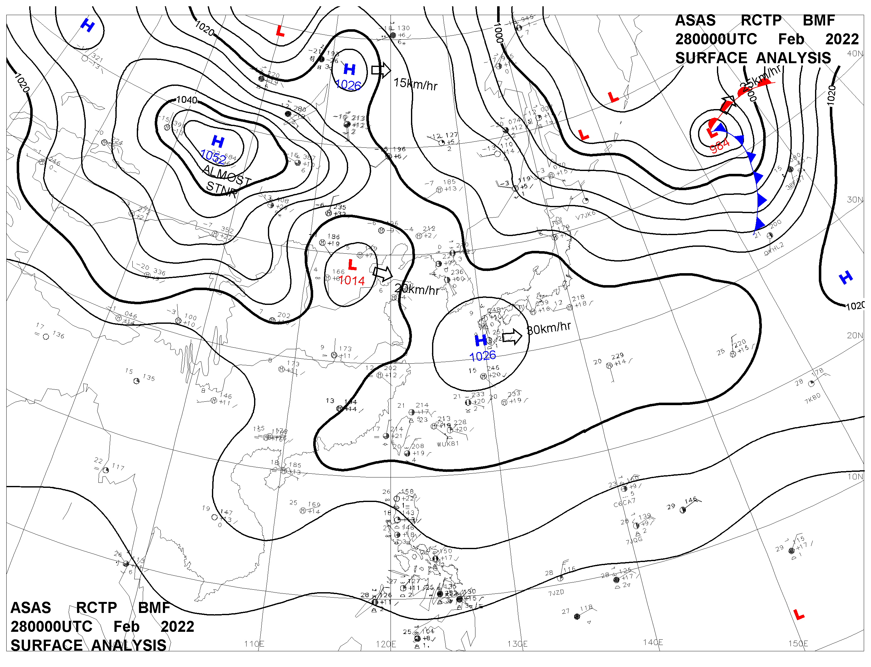 2022/02/28 00z sfcmap 天氣圖