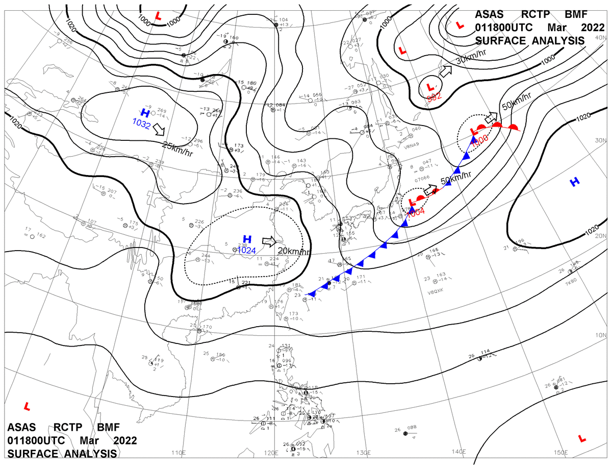 2022/03/01 18z sfcmap 天氣圖