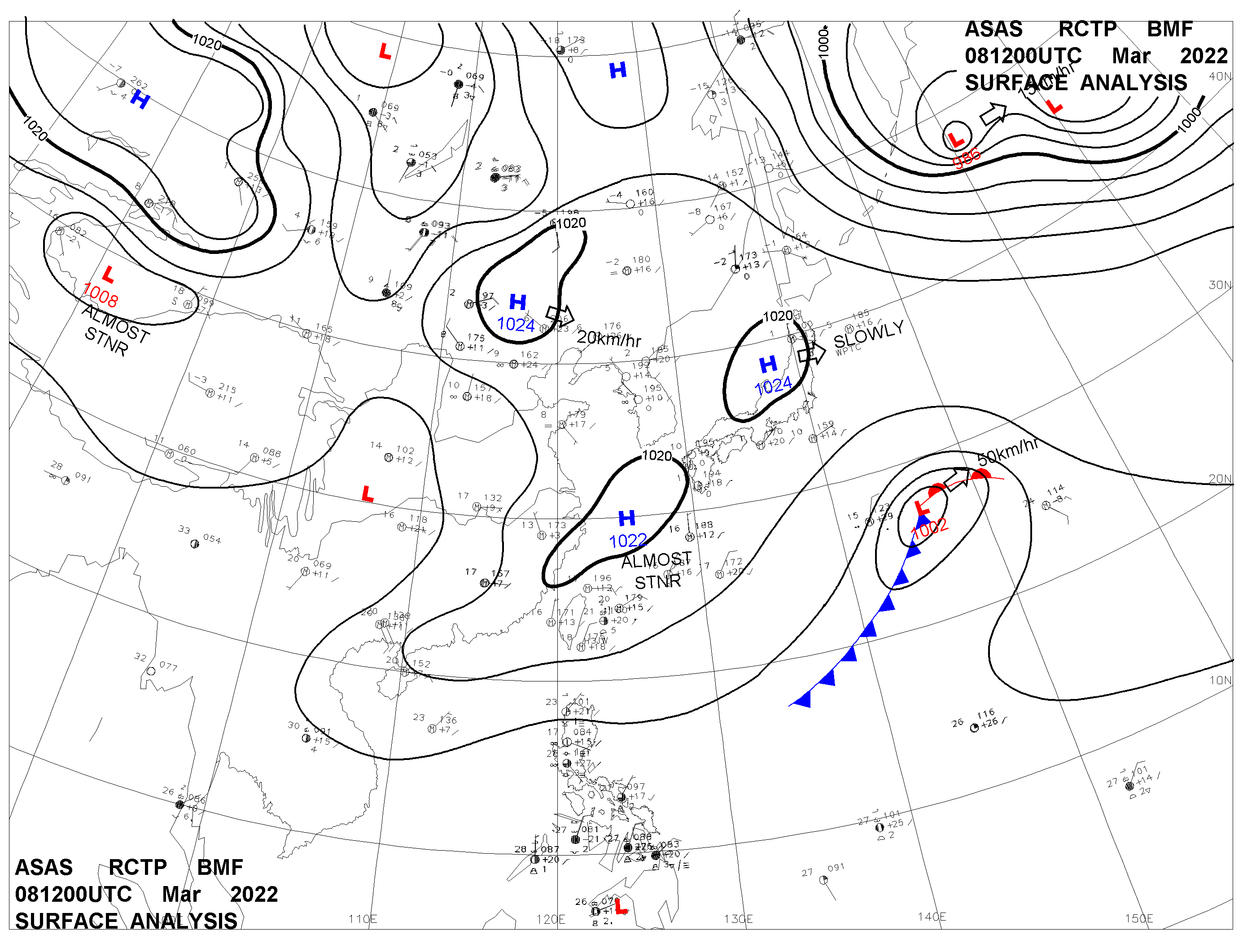 2022/03/08 12z sfcmap 天氣圖