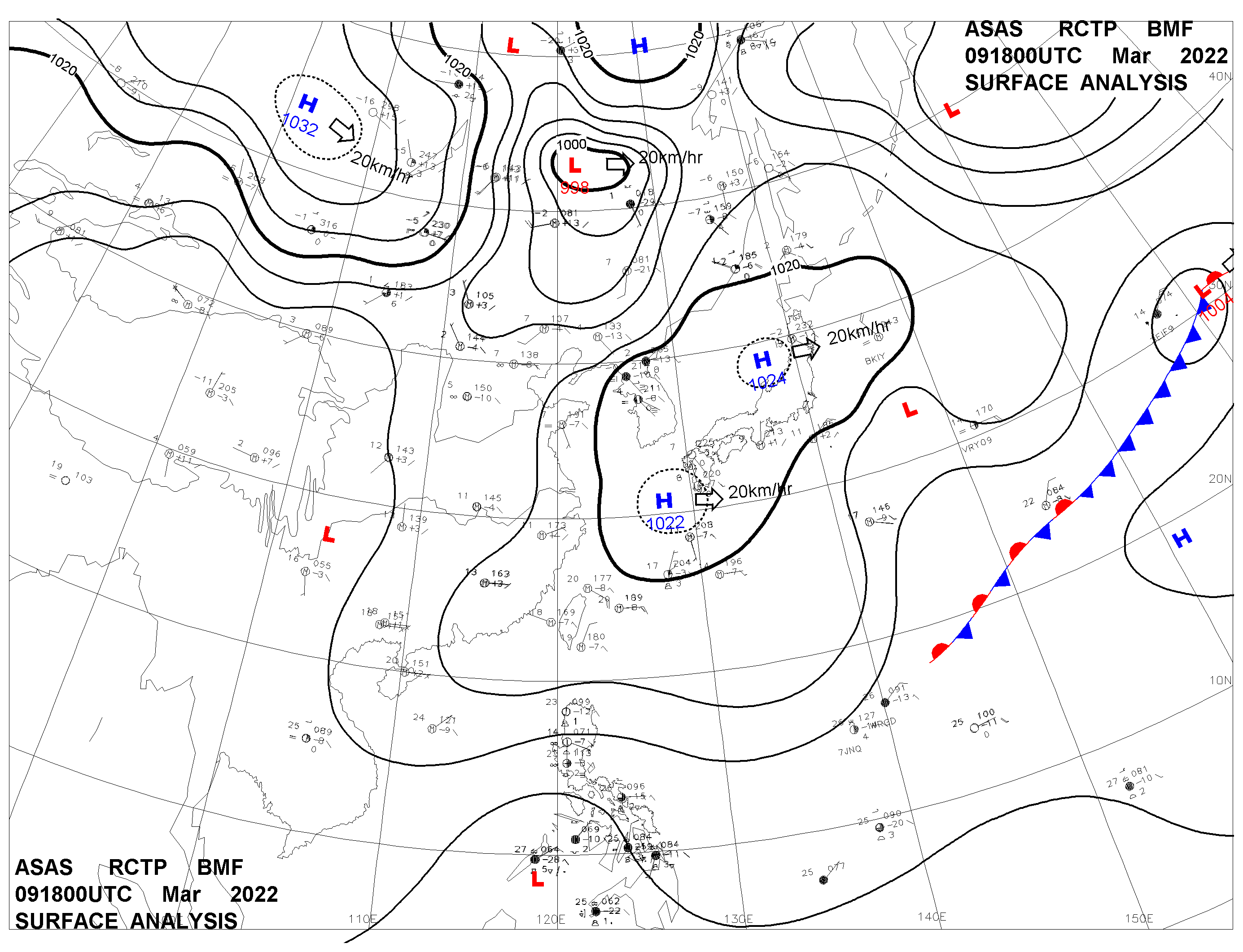 2022/03/09 18z sfcmap 天氣圖