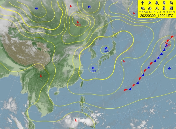 2022-03-09 12 UTC CWB 地面圖