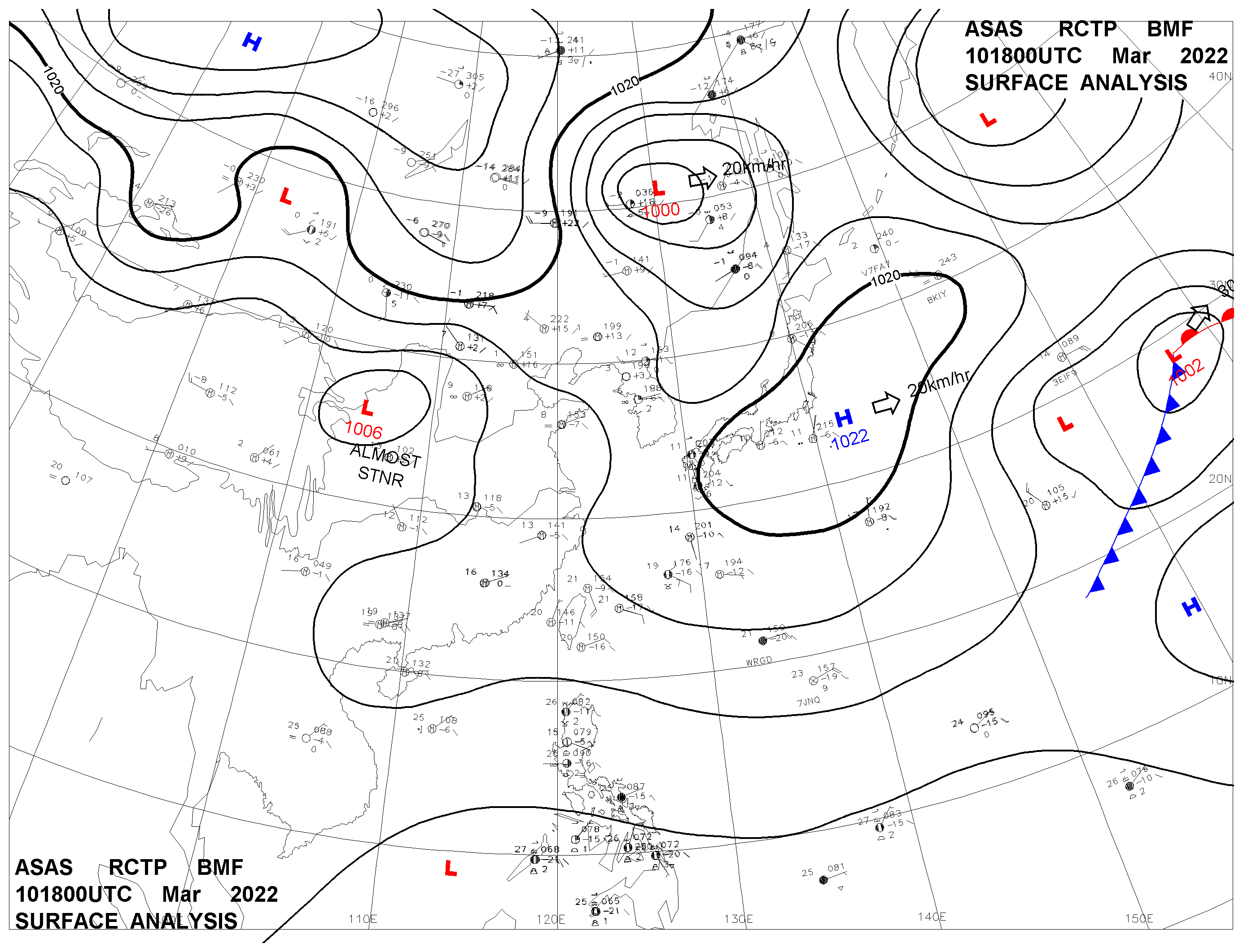 2022/03/10 18z sfcmap 天氣圖