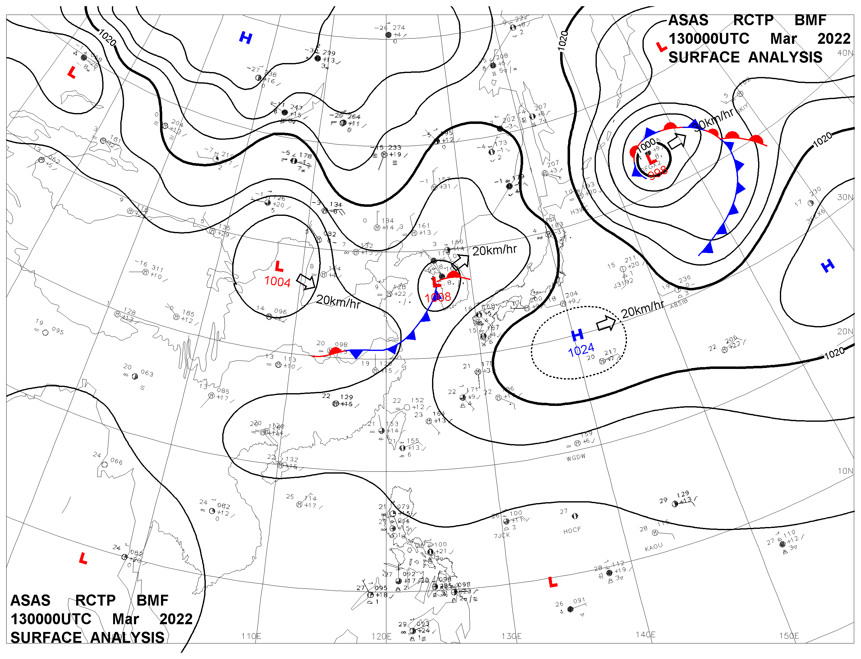 2022/03/13 00z sfcmap 天氣圖