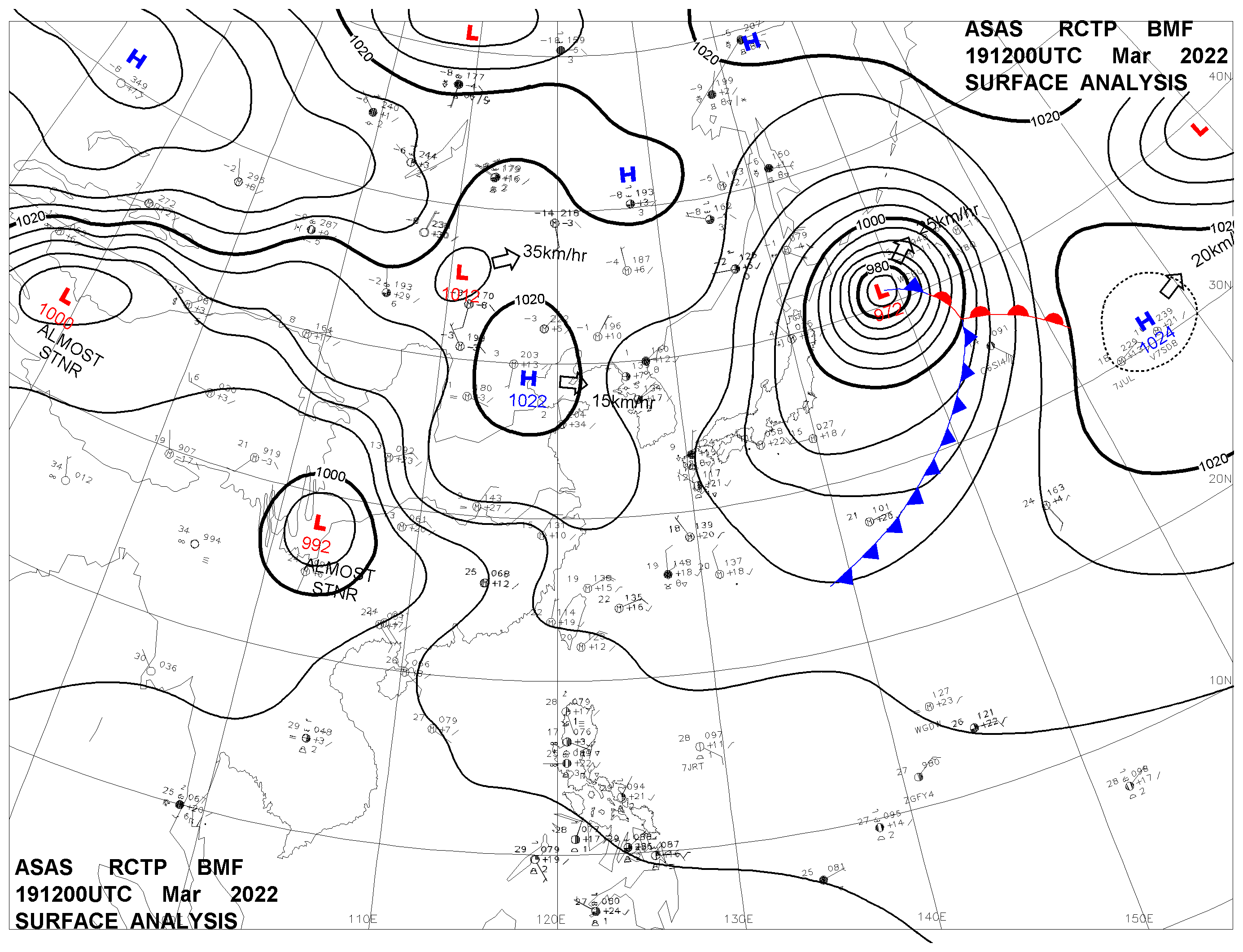 2022/03/19 12z sfcmap 天氣圖