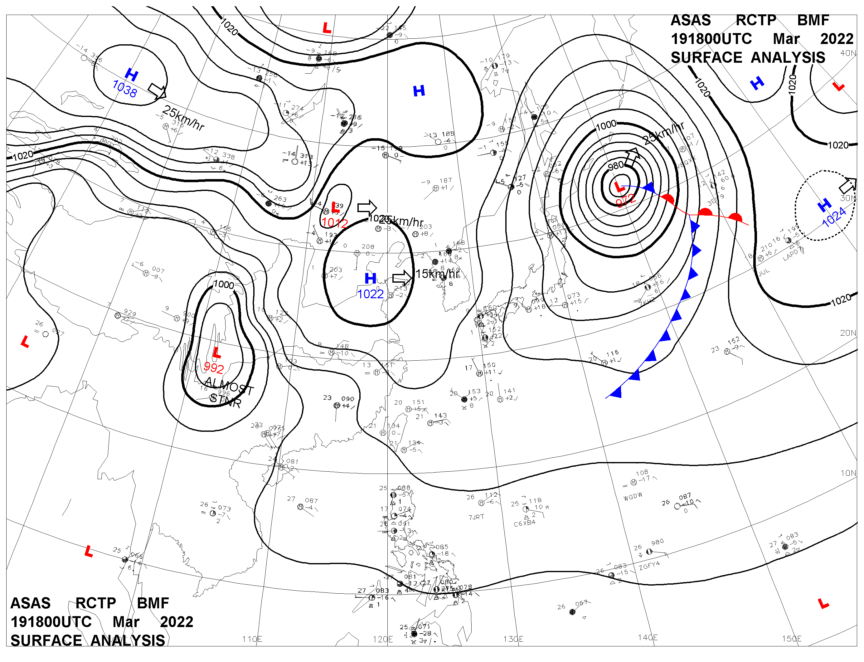 2022/03/19 18z sfcmap 天氣圖