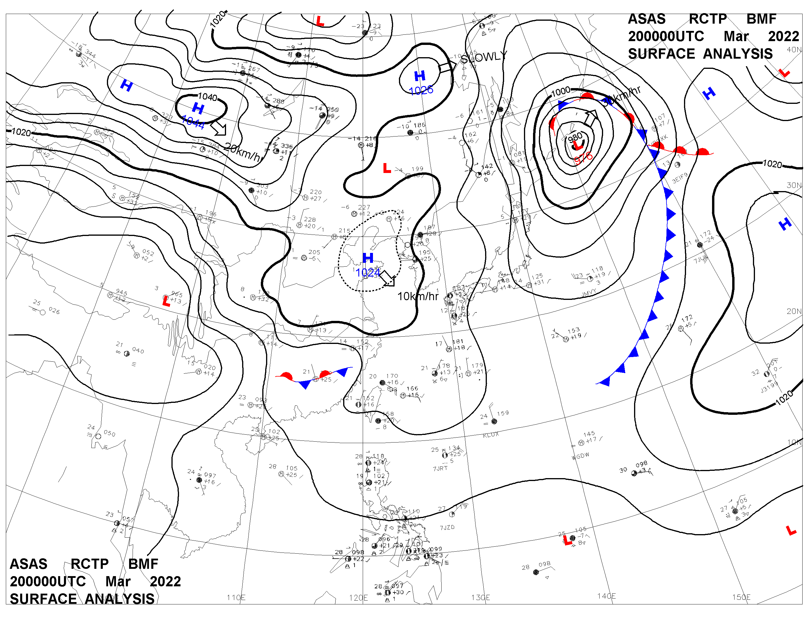 2022/03/20 00z sfcmap 天氣圖