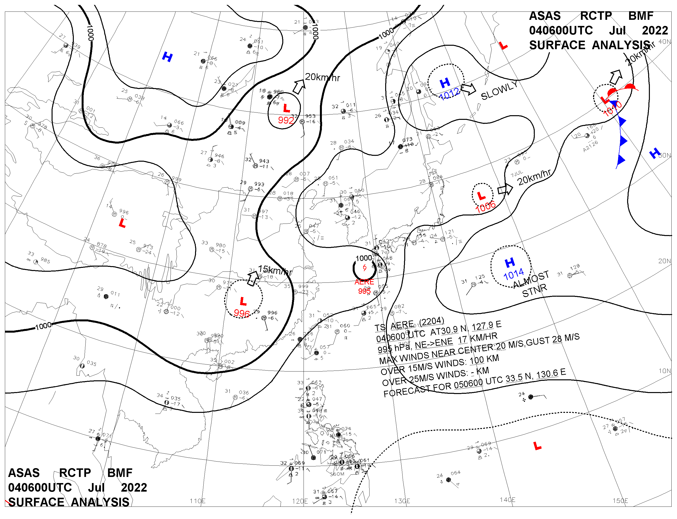 2022/07/04 06z sfcmap 天氣圖
