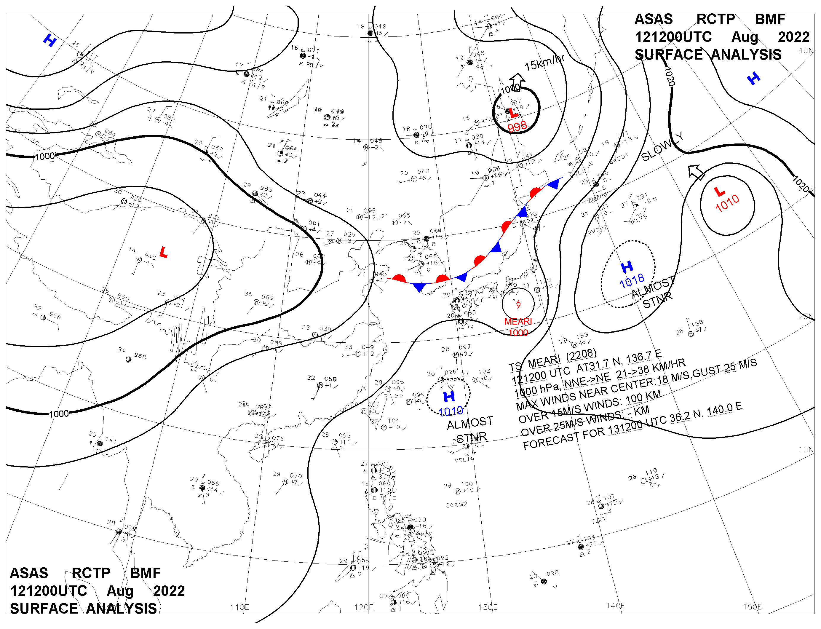 2022/08/12 12z sfcmap 天氣圖