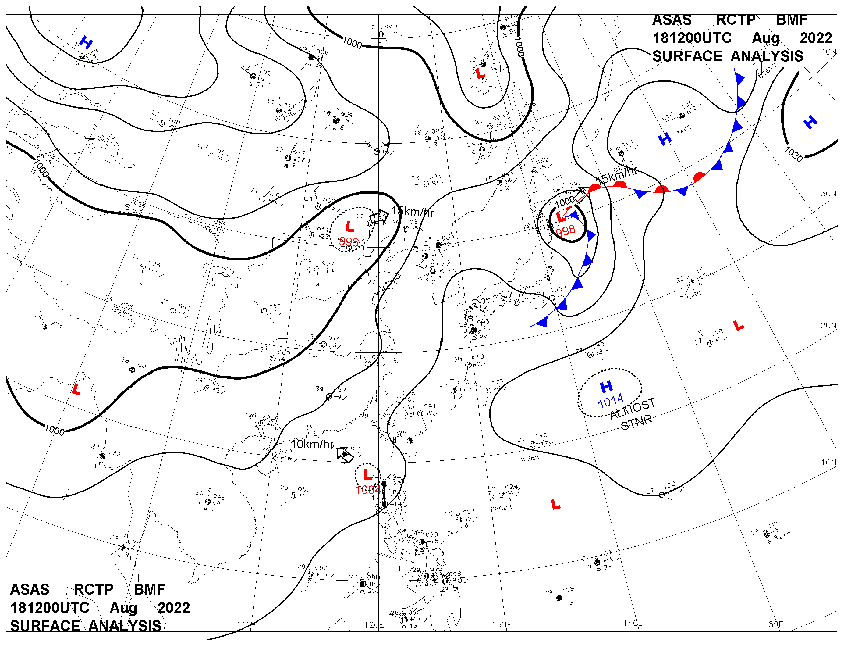 2022/08/18 12z sfcmap 天氣圖