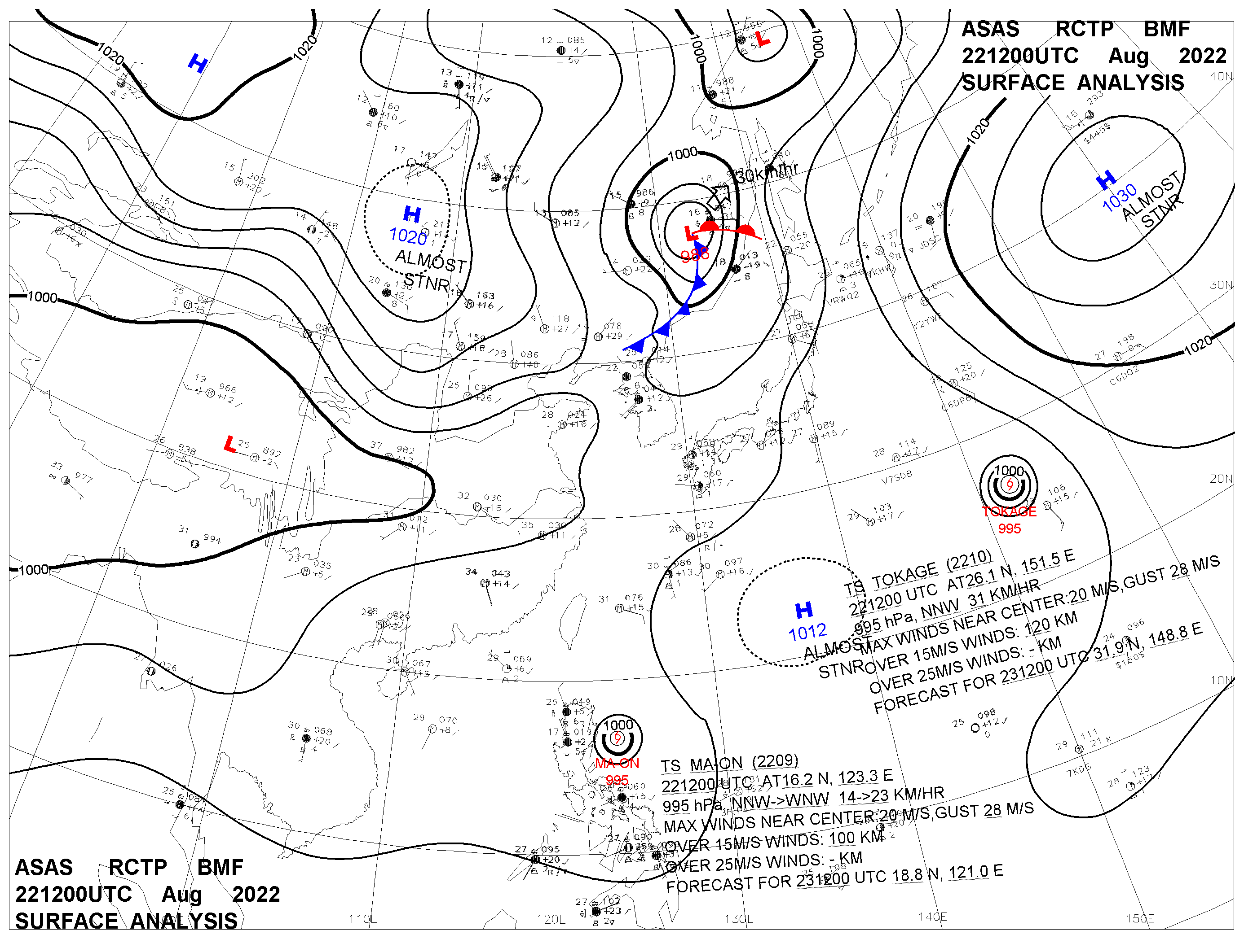 2022/08/22 12z sfcmap 天氣圖