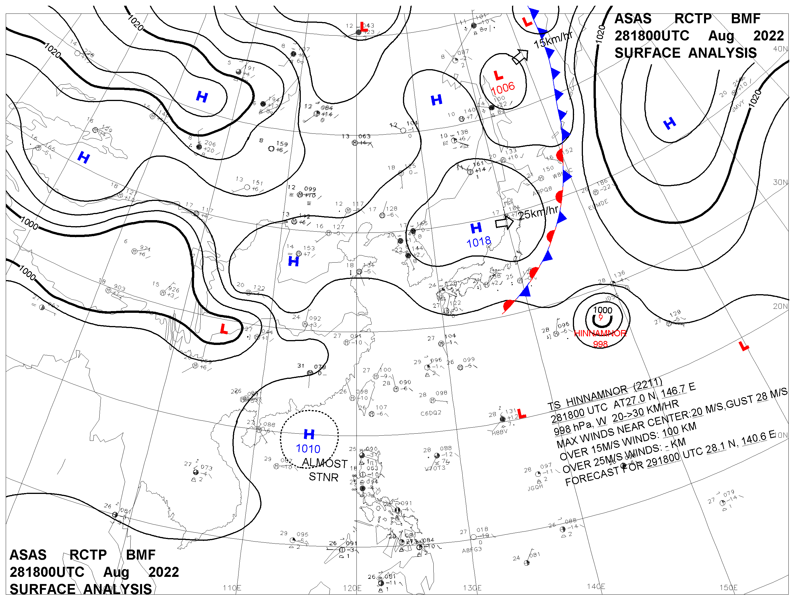 2022/08/28 18z sfcmap 天氣圖