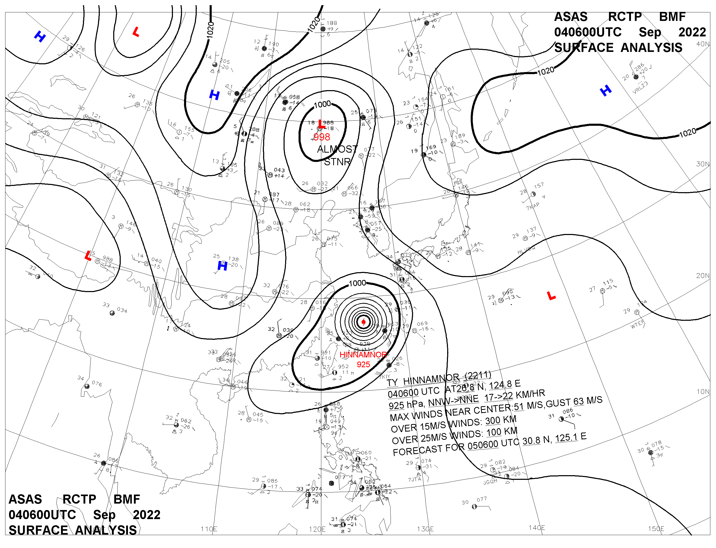 2022/09/04 06z sfcmap 天氣圖