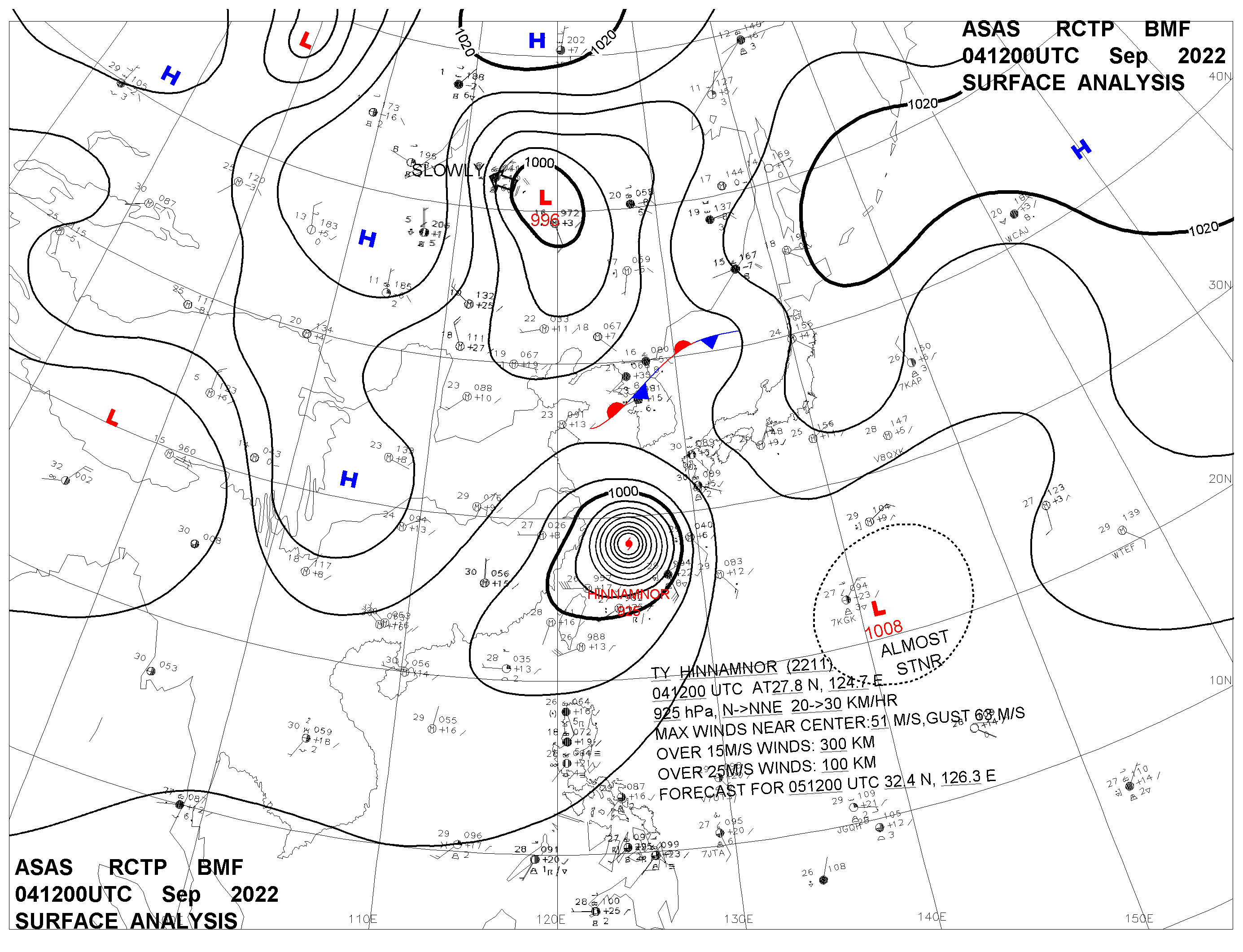 2022/09/04 12z sfcmap 天氣圖