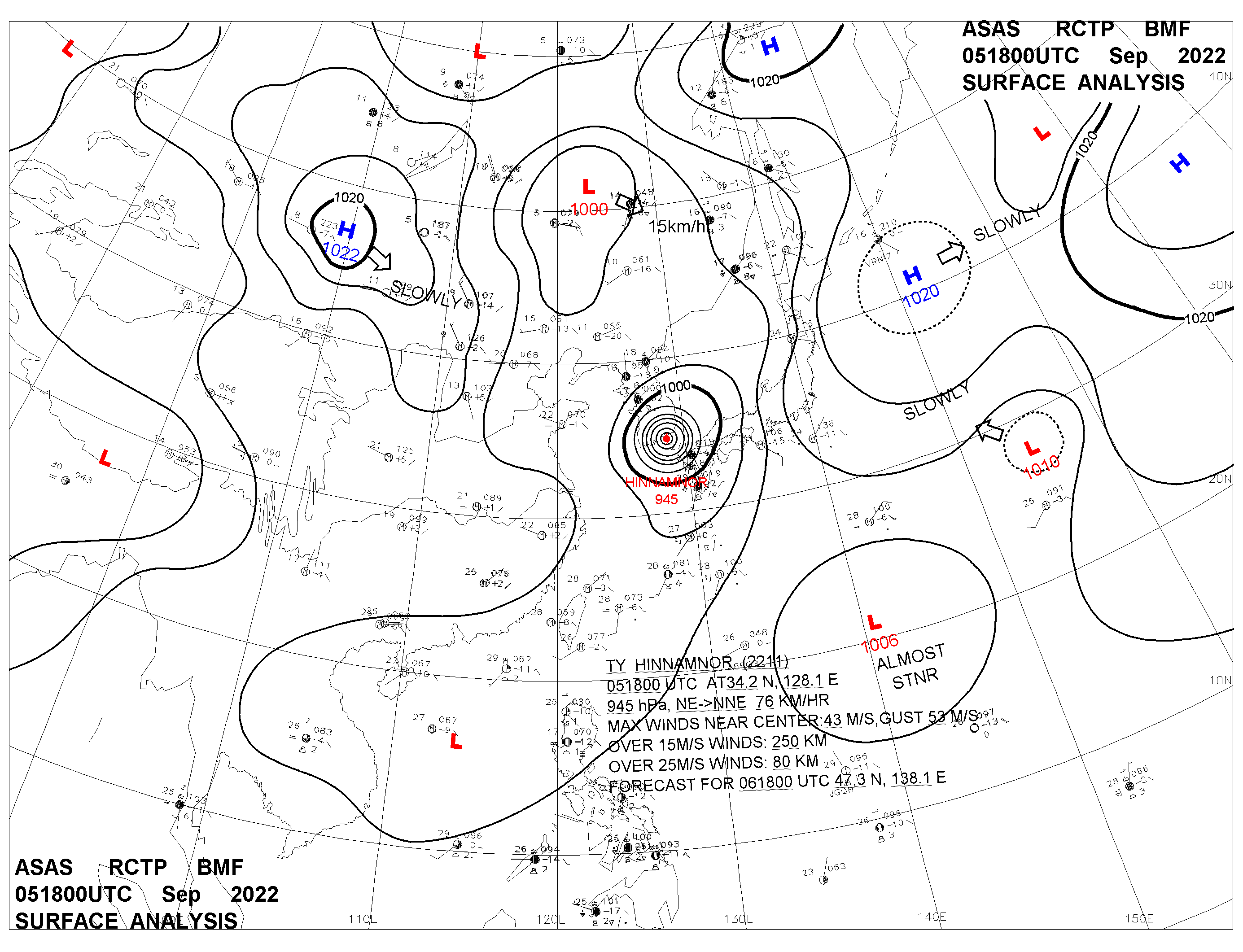 2022/09/05 18z sfcmap 天氣圖