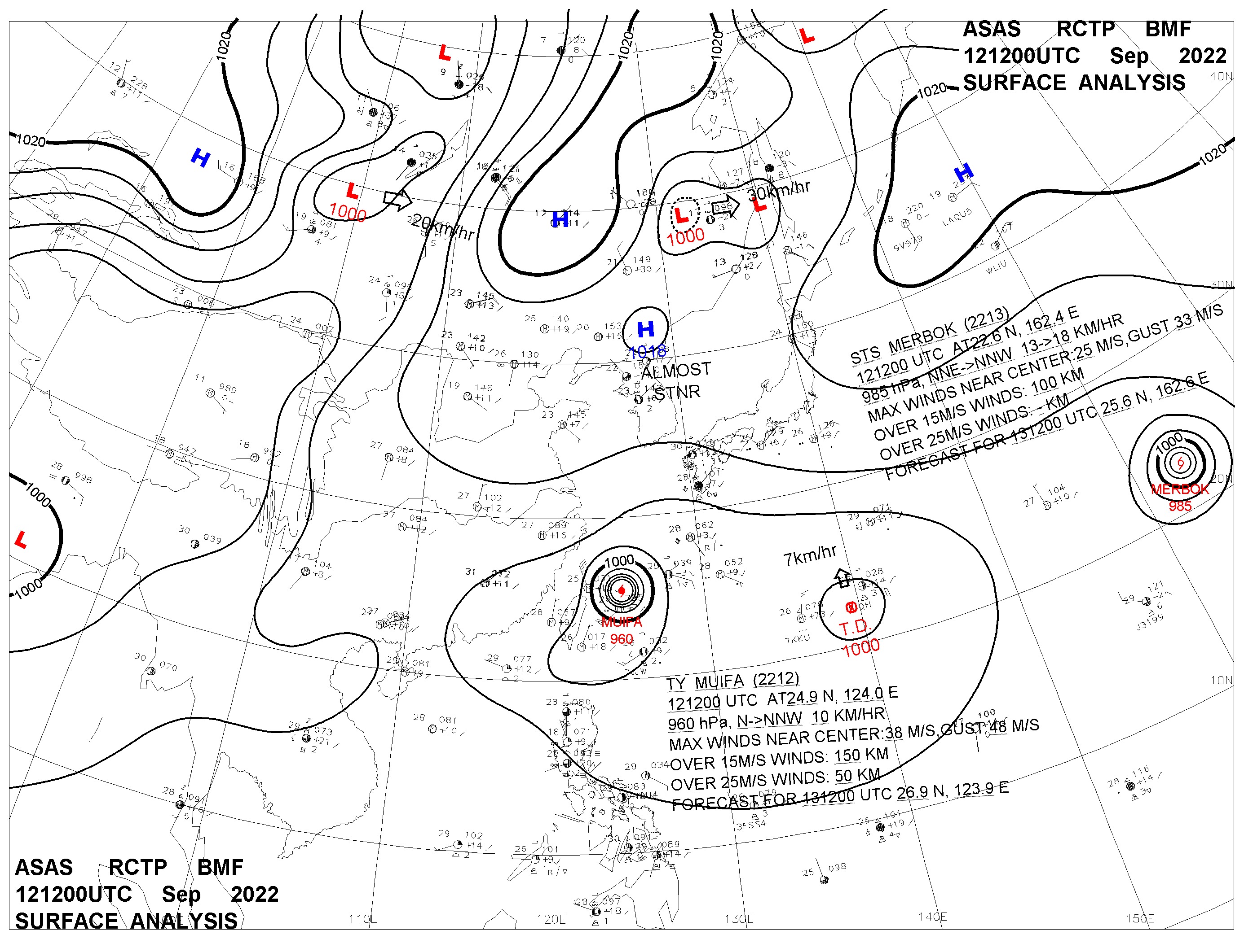 2022/09/12 12z sfcmap 天氣圖