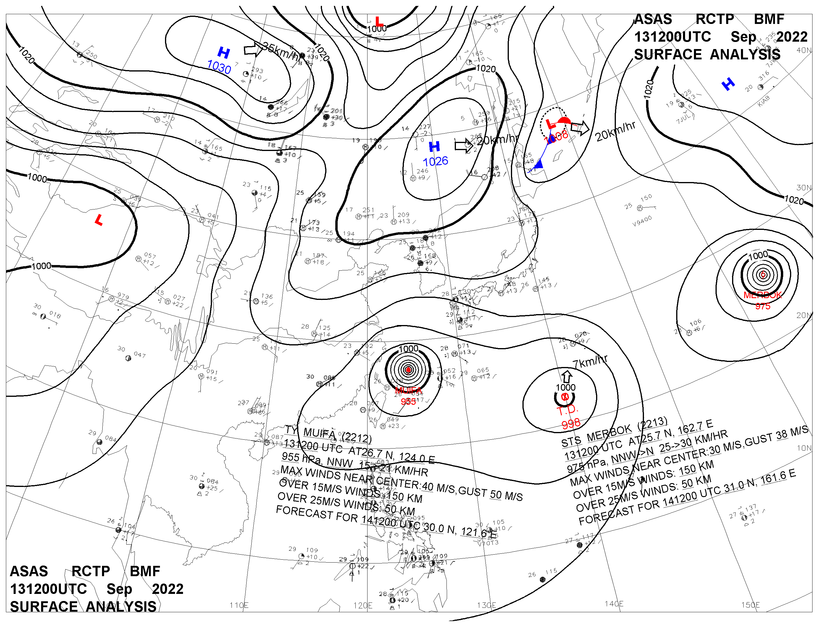 2022/09/13 12z sfcmap 天氣圖