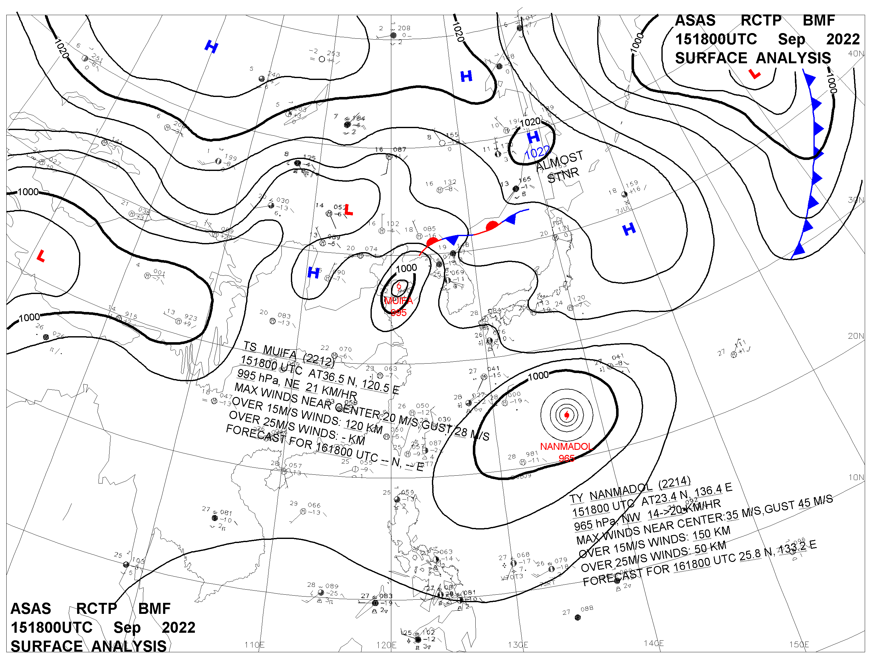 2022/09/15 18z sfcmap 天氣圖