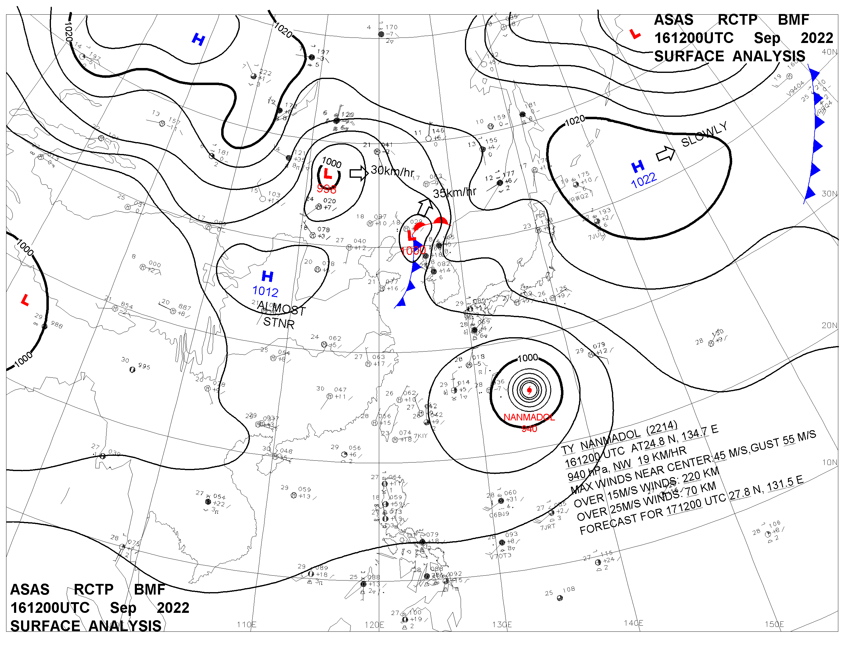 2022/09/16 12z sfcmap 天氣圖