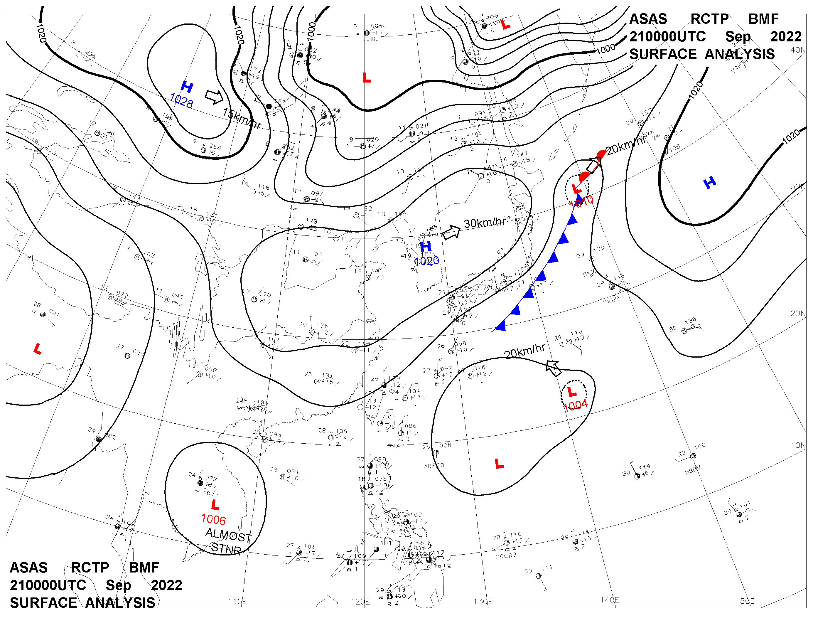 2022/09/21 00z sfcmap 天氣圖