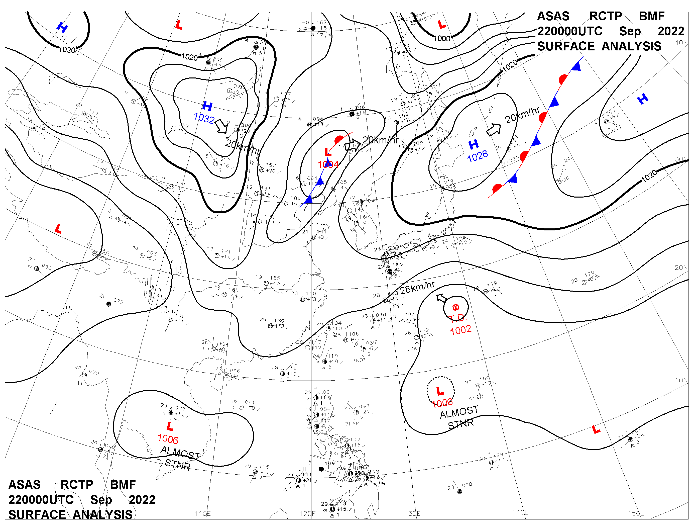 2022/09/22 00z sfcmap 天氣圖
