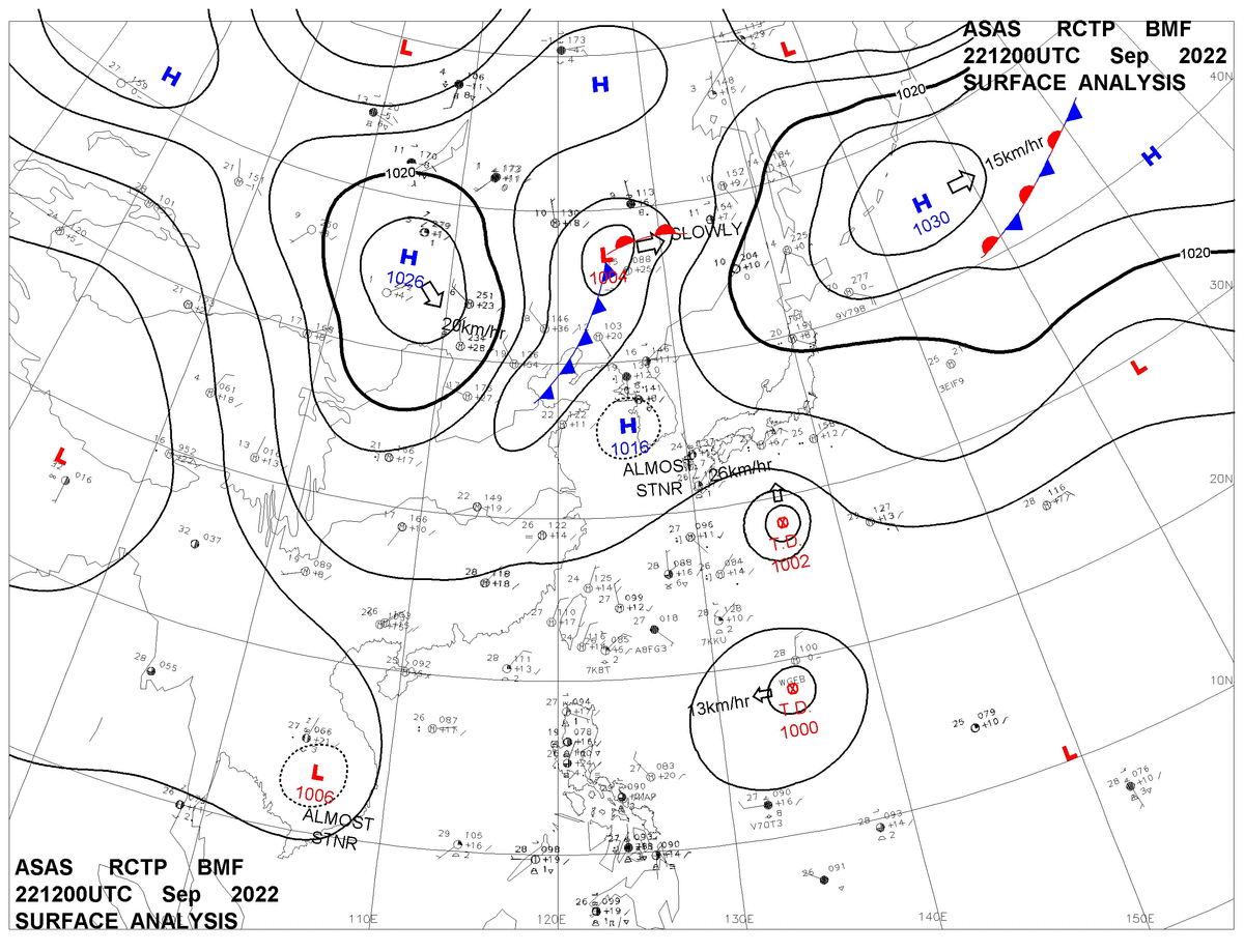 2022/09/22 12z sfcmap 天氣圖