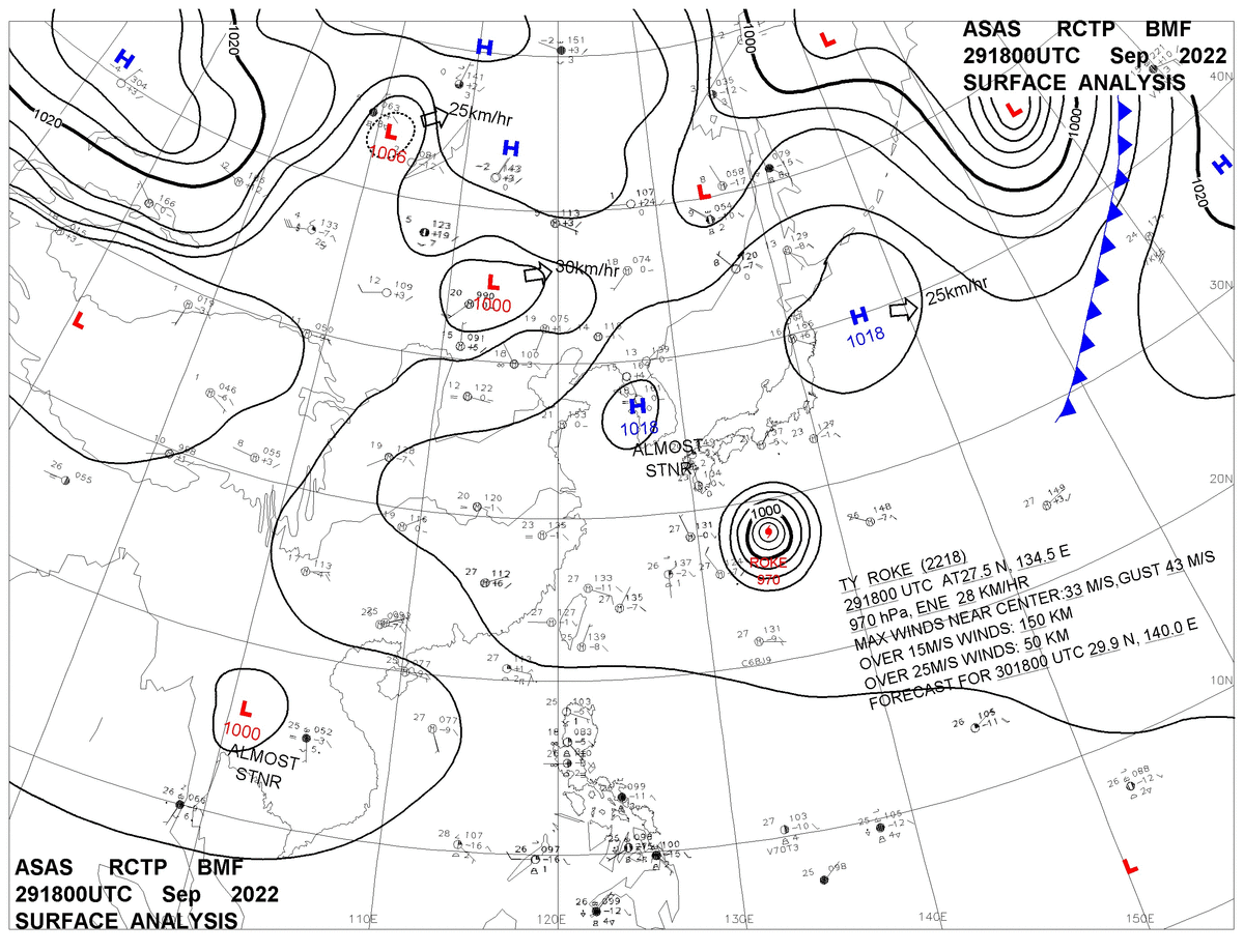 2022/09/29 18z sfcmap 天氣圖