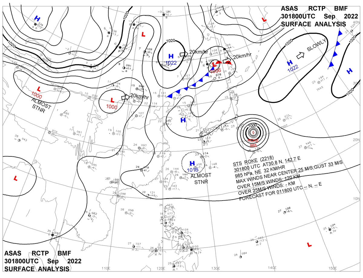 2022/09/30 18z sfcmap 天氣圖