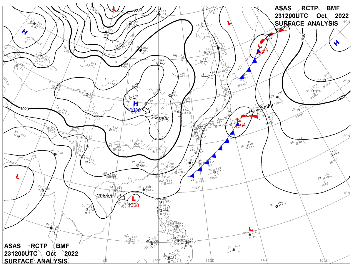 2022/10/23 12z sfcmap 天氣圖