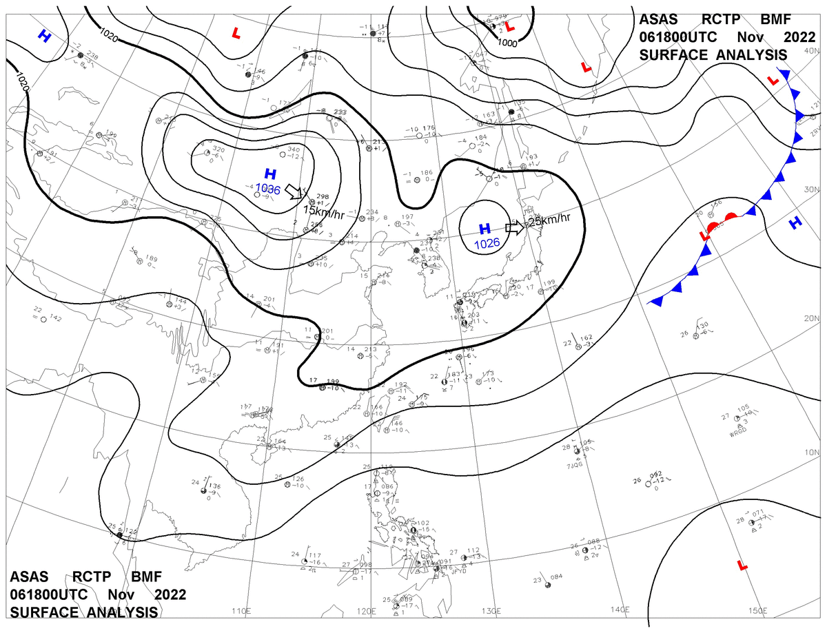 2022/11/06 18z sfcmap 天氣圖