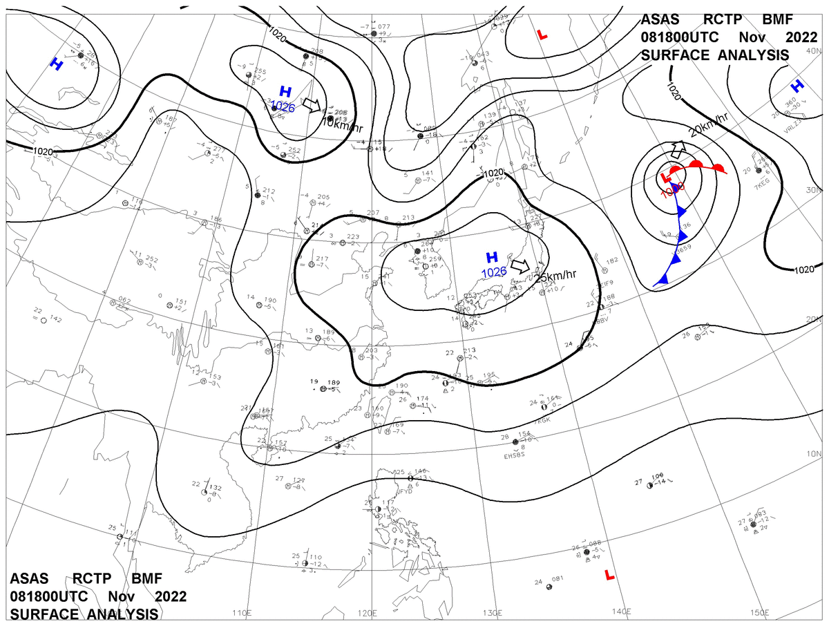 2022/11/08 18z sfcmap 天氣圖