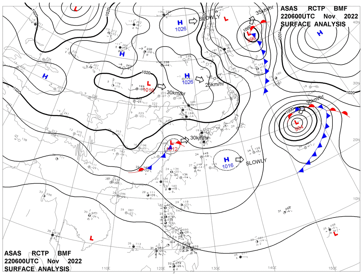 2022/11/22 06z sfcmap 天氣圖