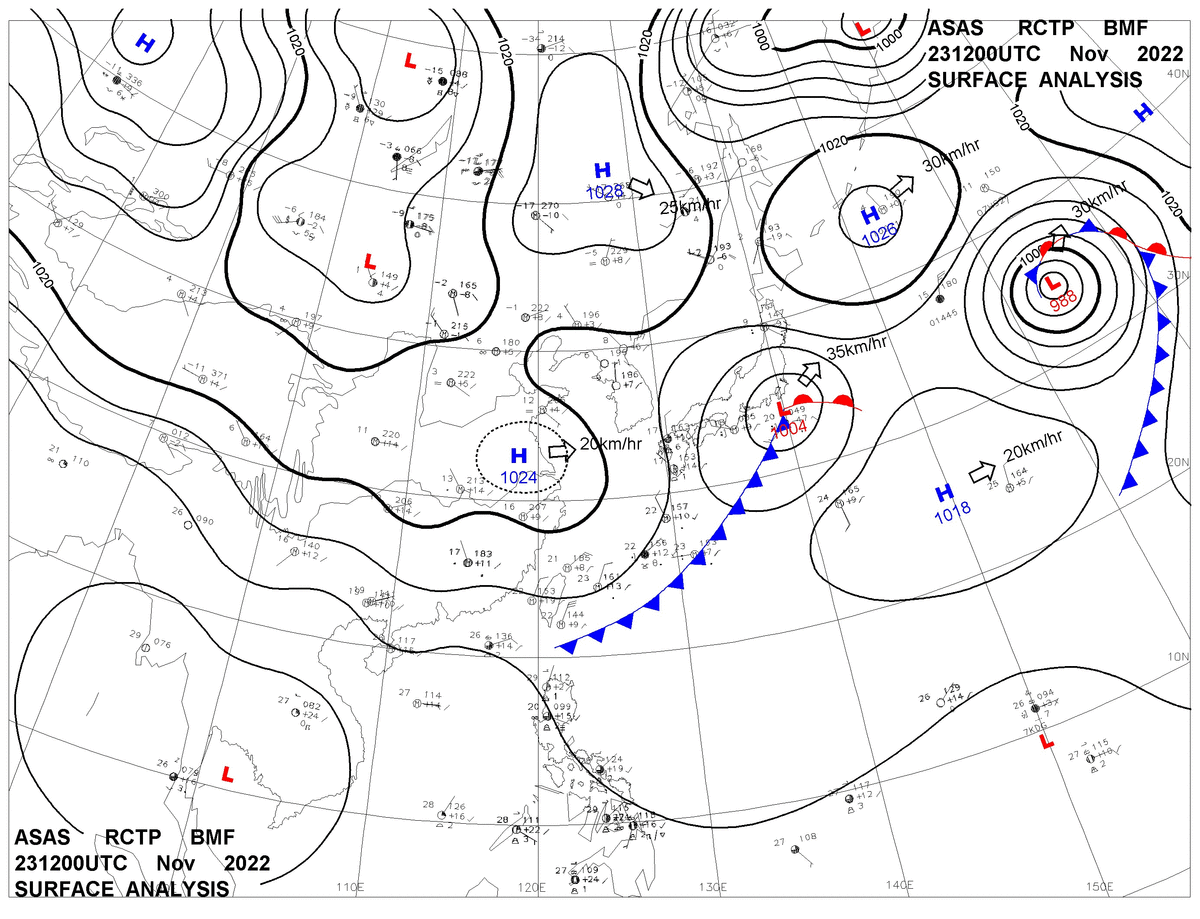 2022/11/23 12z sfcmap 天氣圖